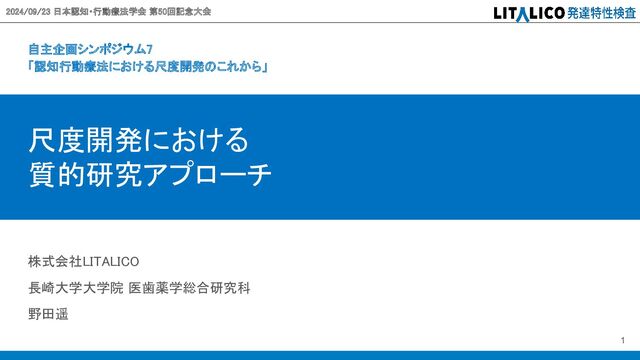 本資料は、日本認知・行動療法学会第50回記念大会( https://cs-oto3.com/jabct2024/ )において発表した『尺度開発における質的研究アプローチ(自主企画シンポジウム7:認知行動療法における尺度開発のこれから)』の発表資料です。
