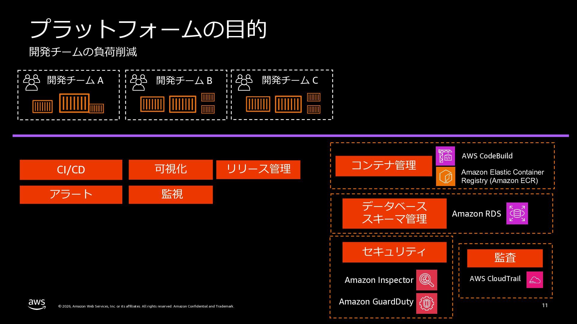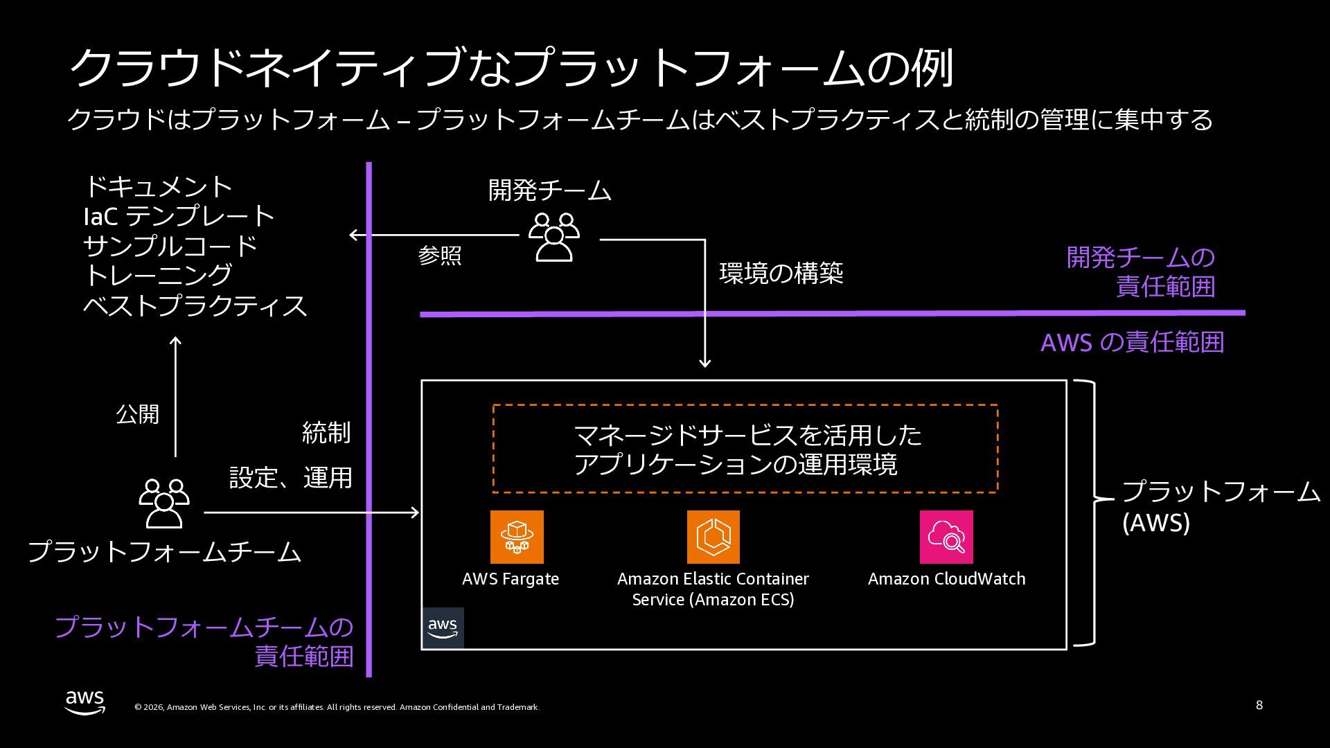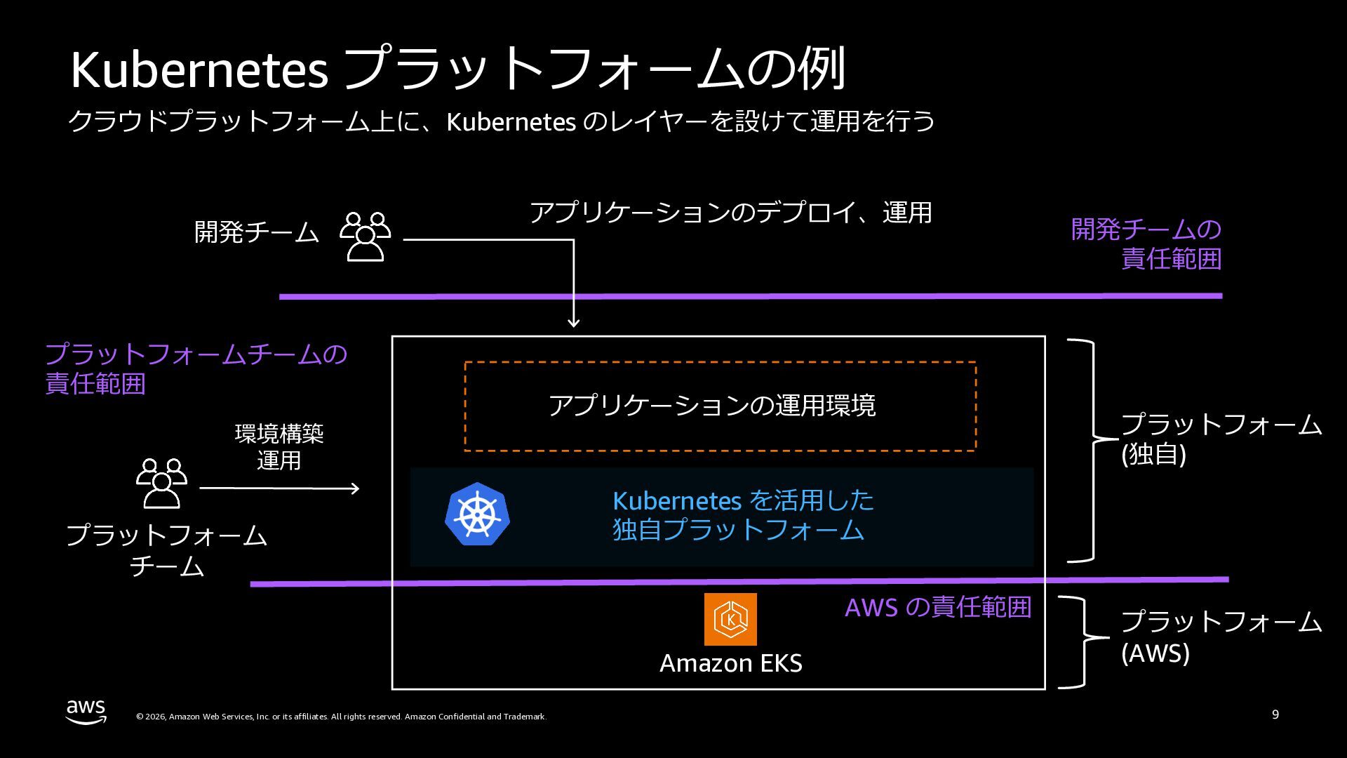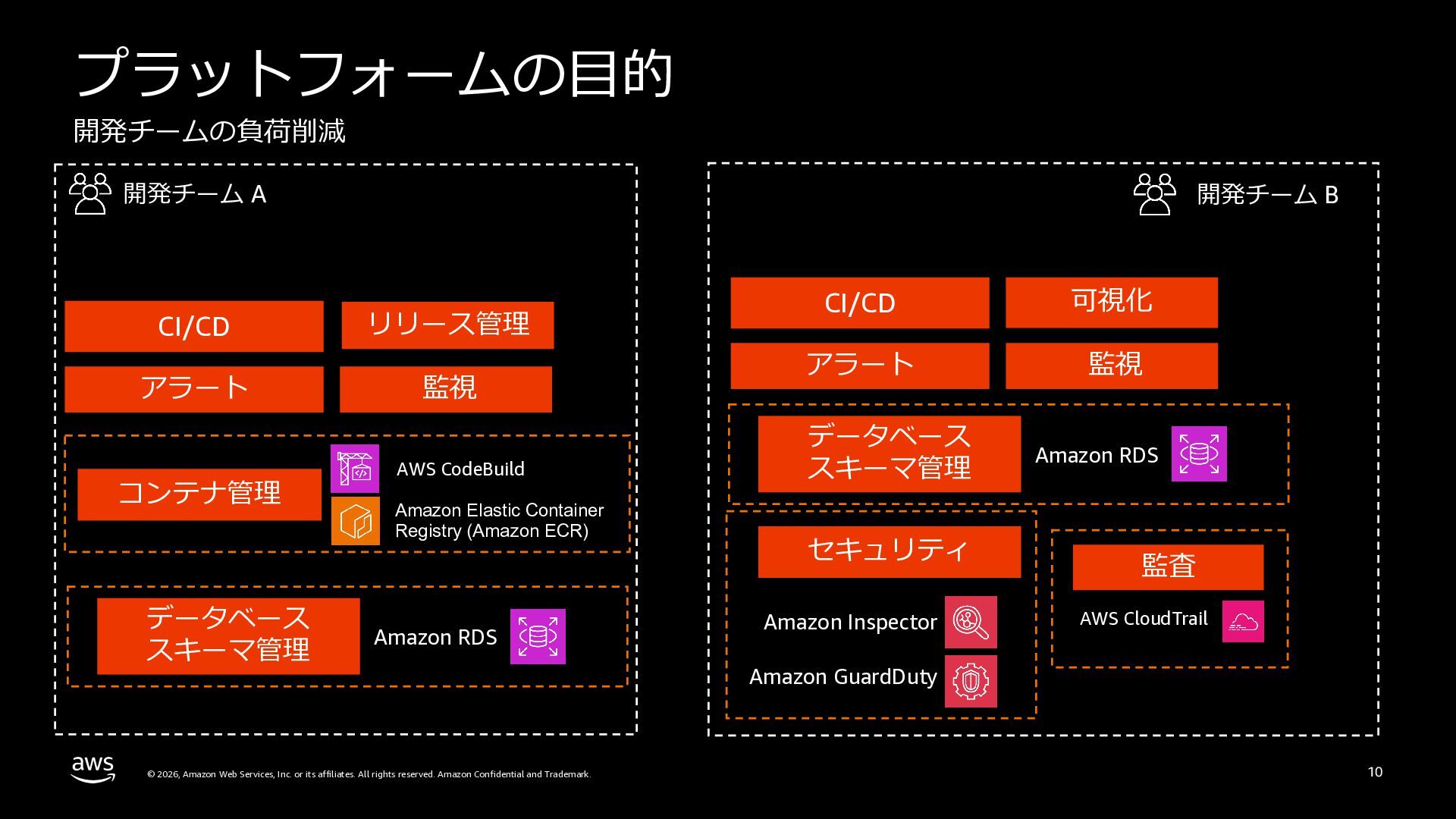 本セッションでは、プラットフォームエンジニアリングの背景と目的を整理した上で、Amazon ECSによるクラウドネイティブなプラットフォームと、Amazon EKSによるKubernetesベースのプラットフォームという2つのアプローチを比較します。