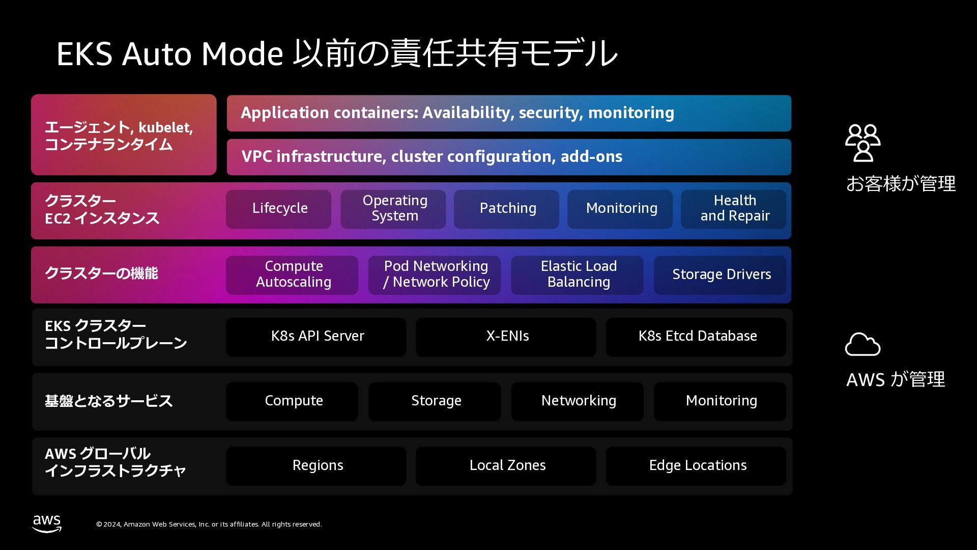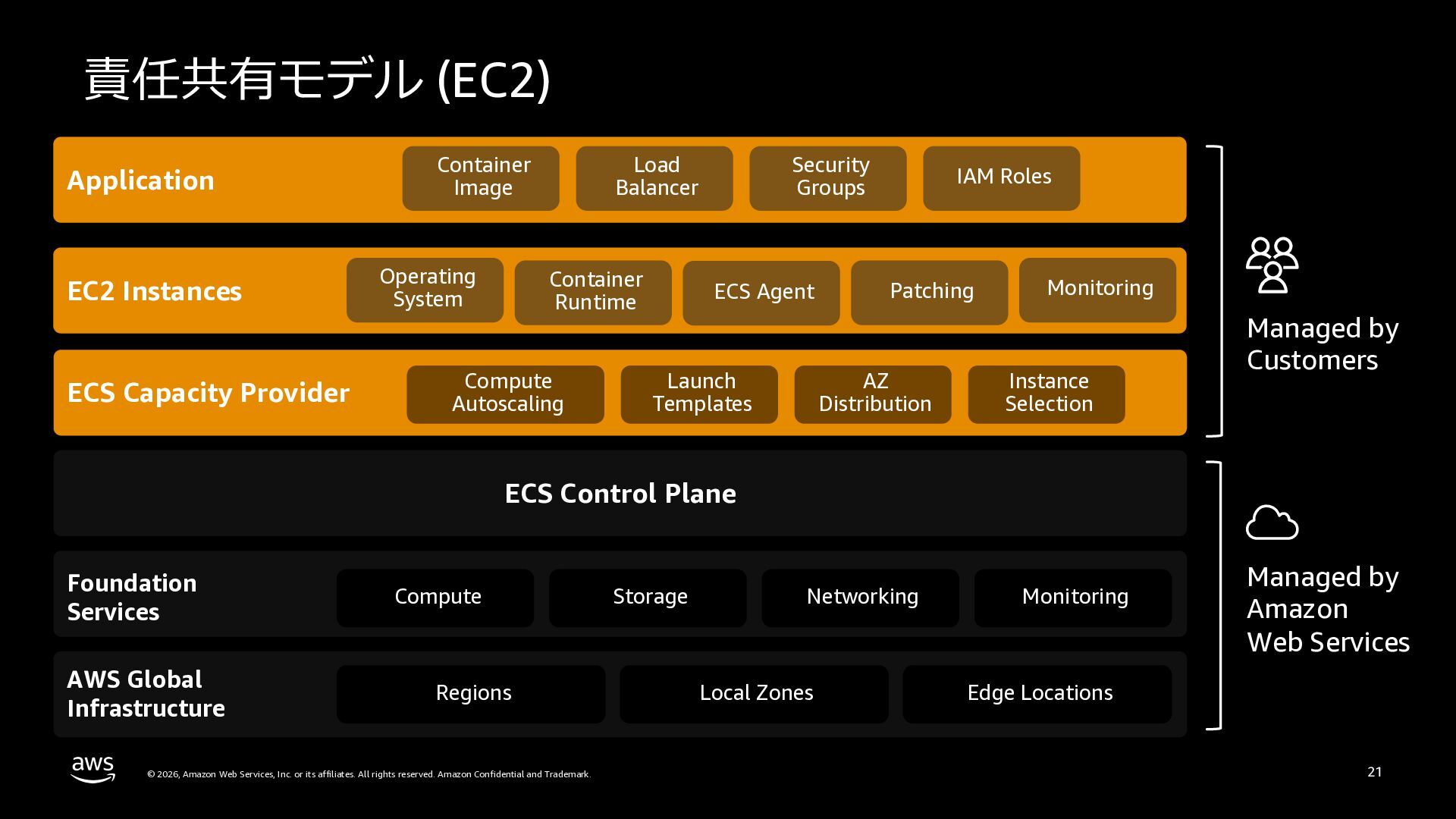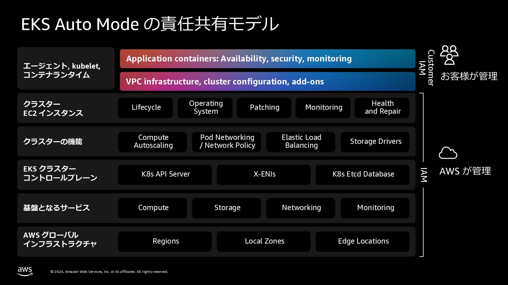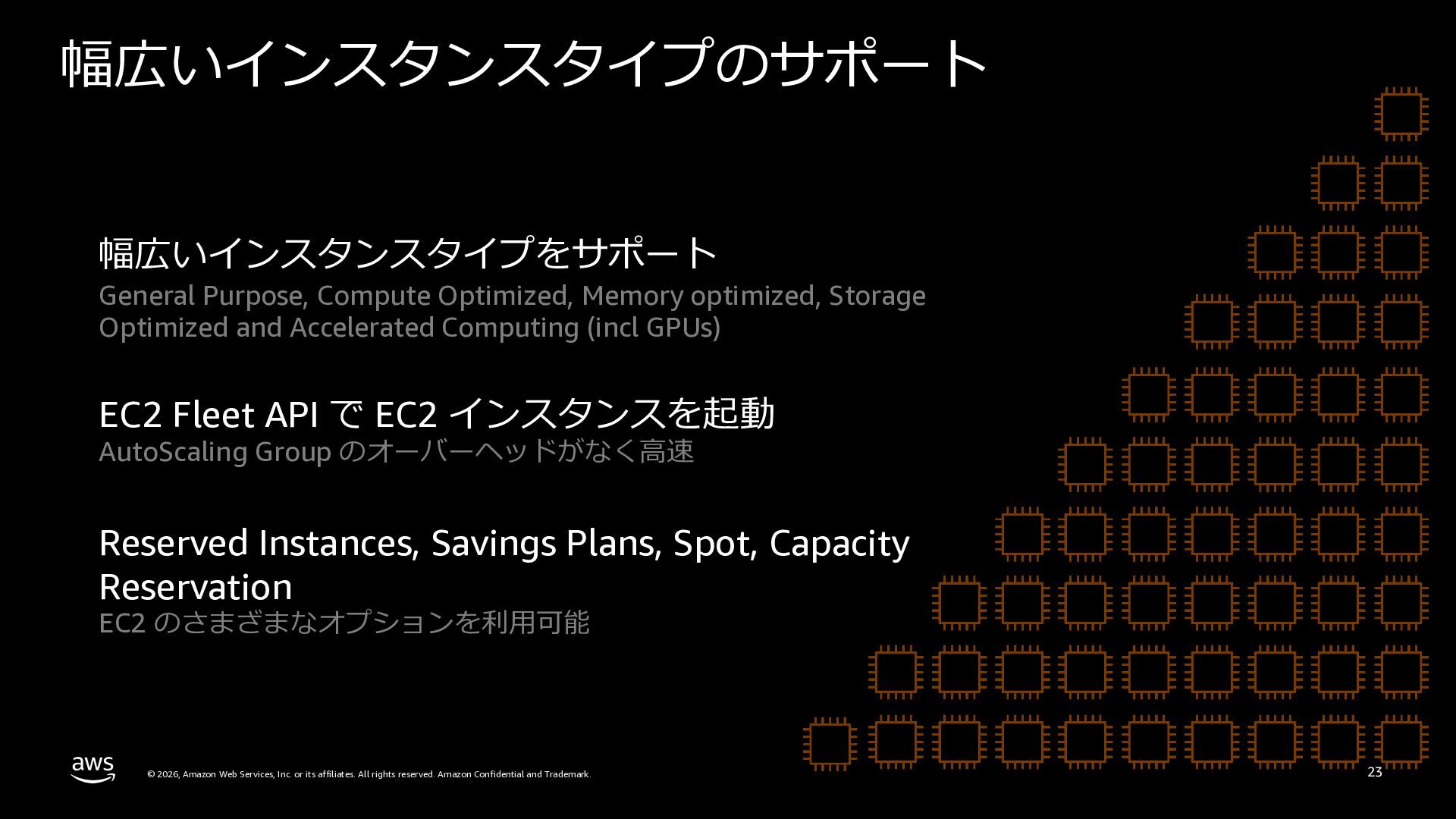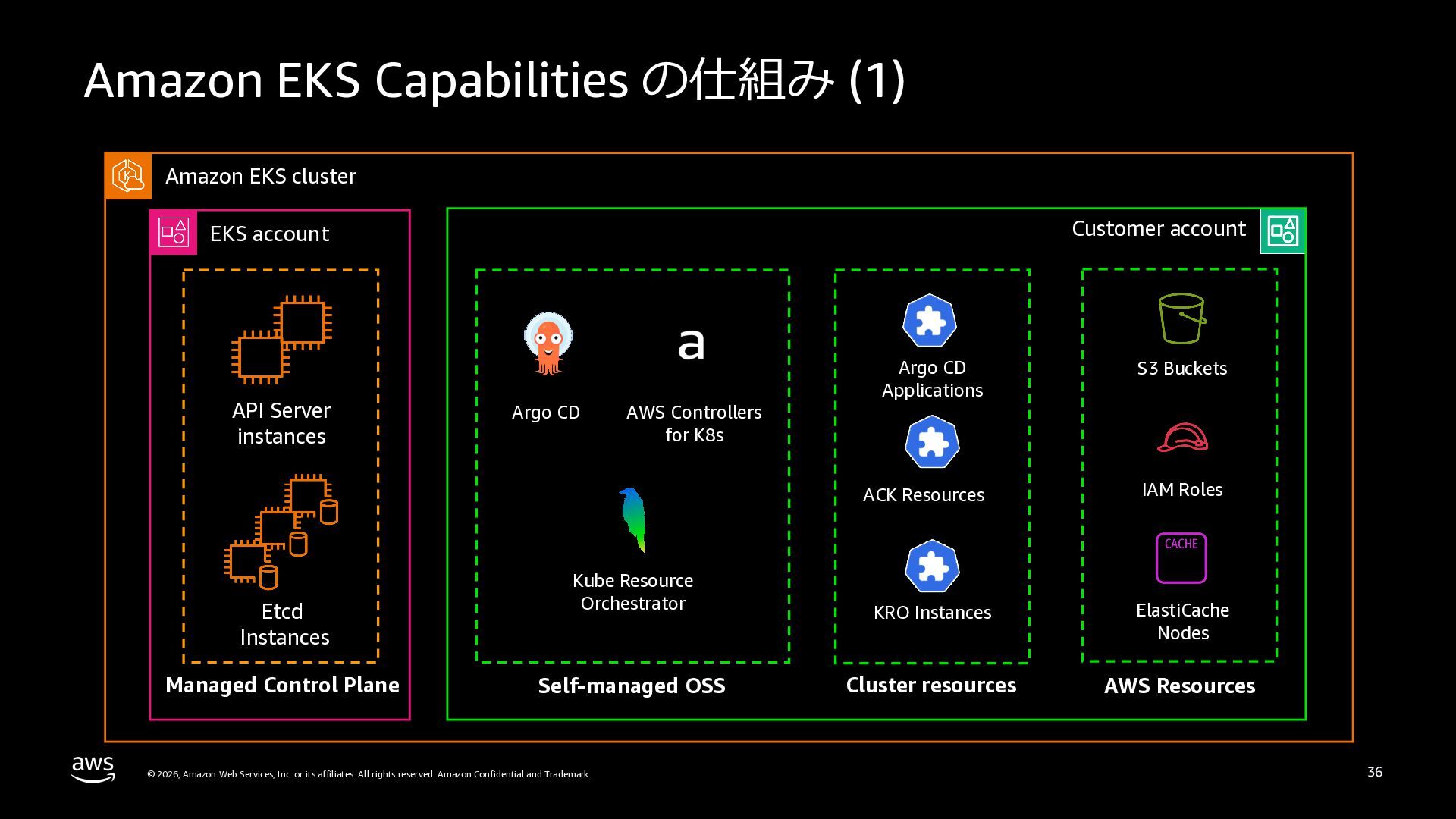 さらに、ECS Managed Instances、リソース最適化、Canary/リニアデプロイといったECSの最新アップデートや、EKS Auto Mode、EC2マネージドインスタンス、EKS Capabilitiesを通じたArgo CD・ACK・kroの統合管理など、プラットフォーム運用負荷を軽減するサービスアップデートを紹介します。