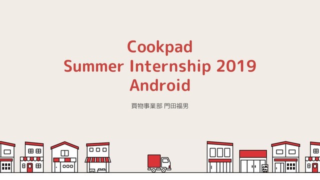 Cookpadのサマーインターン2019の講義4日目、Androidの冒頭のスライドです。