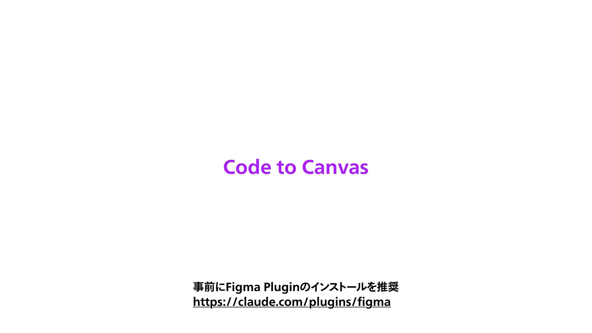 Code to Canvas 事前にFigma Pluginのイ ンス トールを推奨 https://claude.com/plugins/figma