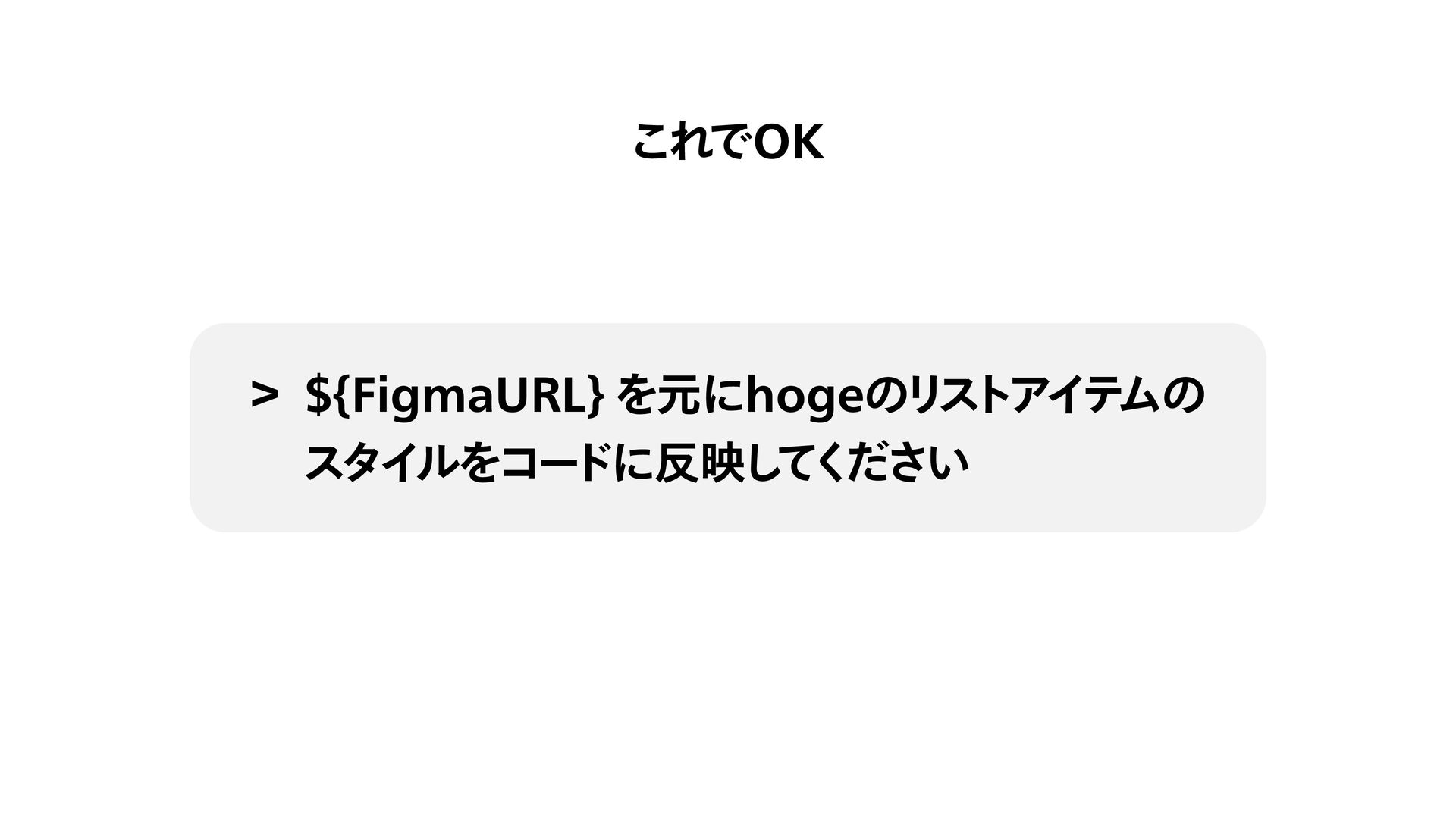 これでOK > ${FigmaURL} を元にhogeのリストアイテムの スタイルをコードに反映してください