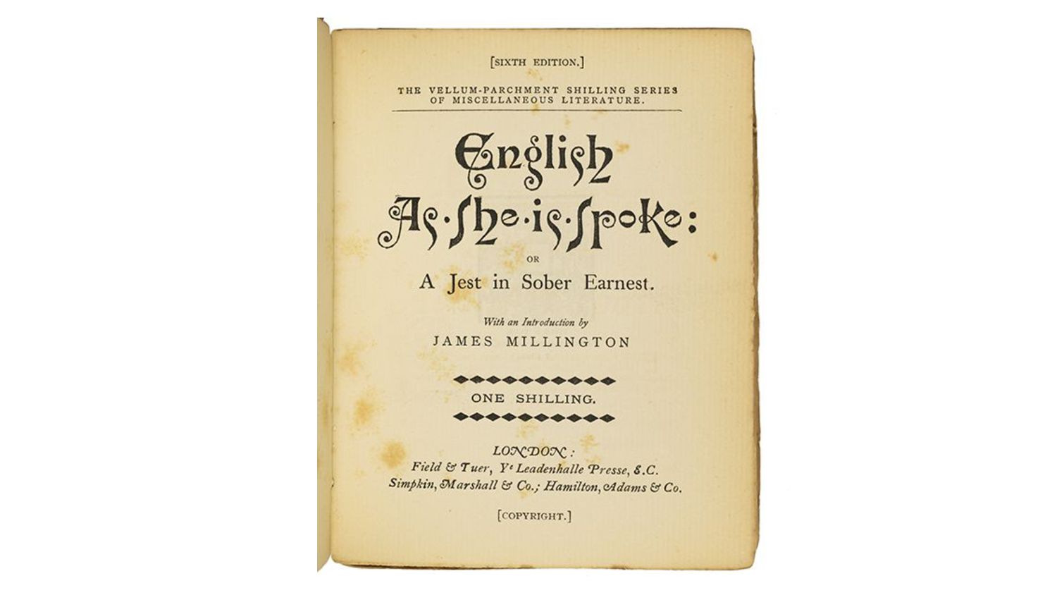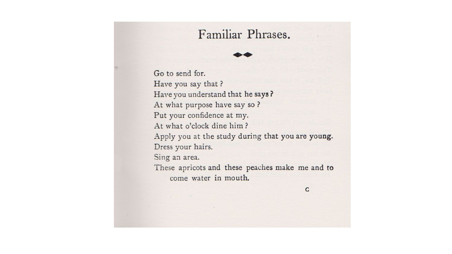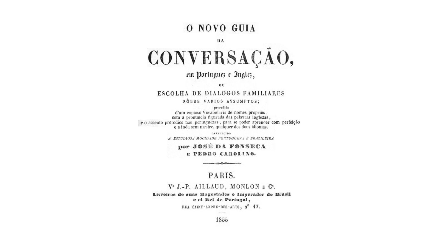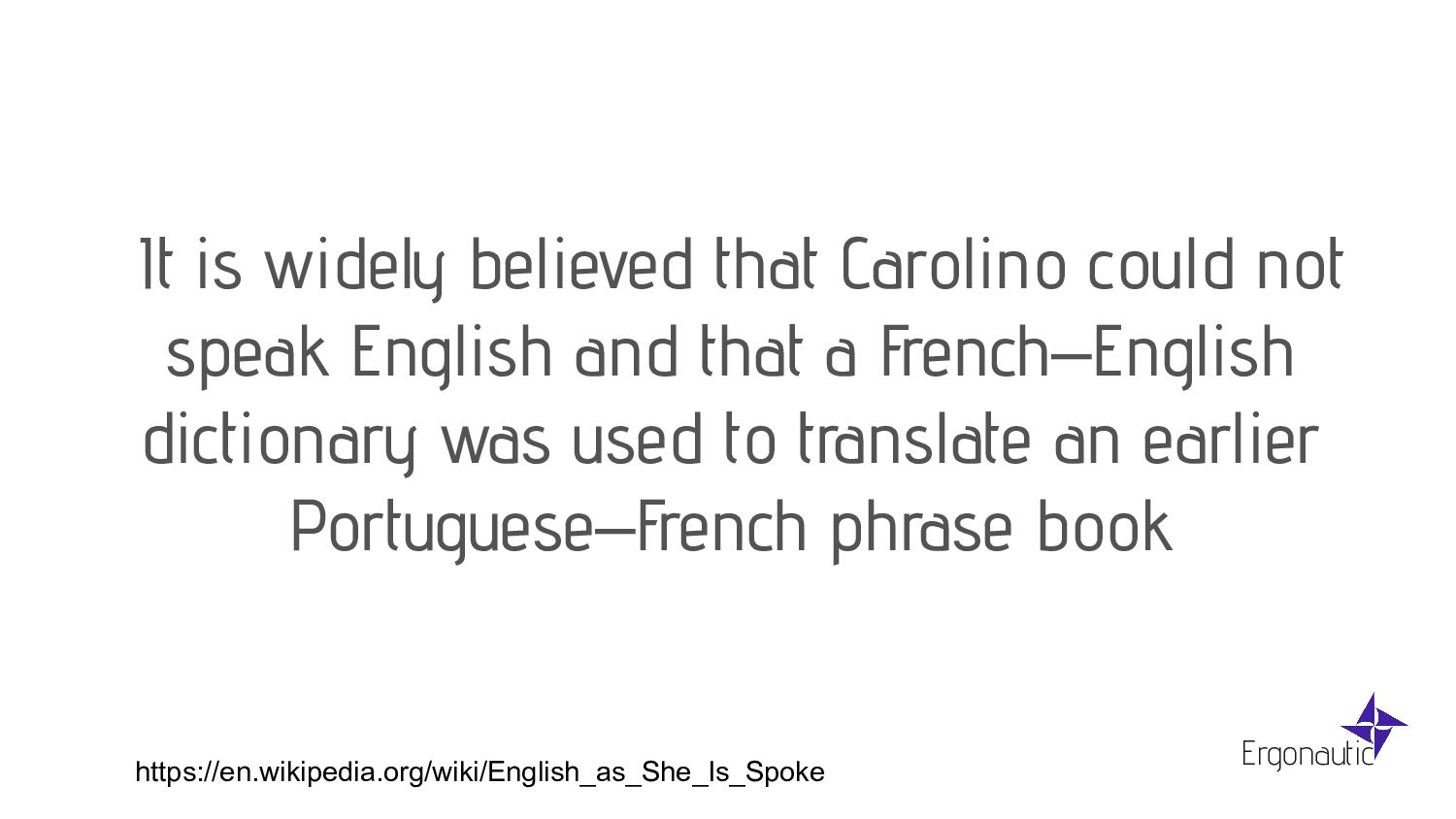 and that a French–English dictionary was used to translate an earlier Portuguese–French phrase book Ergonautic https://en.wikipedia.org/wiki/English_as_She_Is_Spoke