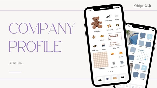 スマホのホーム画面の着せ替えアプリ「WidgetClub」を提供するLiume株式会社の会社概要です。 面接等の際によく聞かれるので資料化してみました。 ぜひご覧いただき、認識を深めていただけると嬉しいです!
