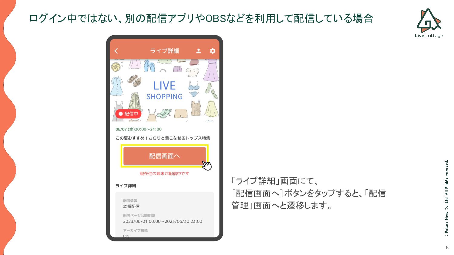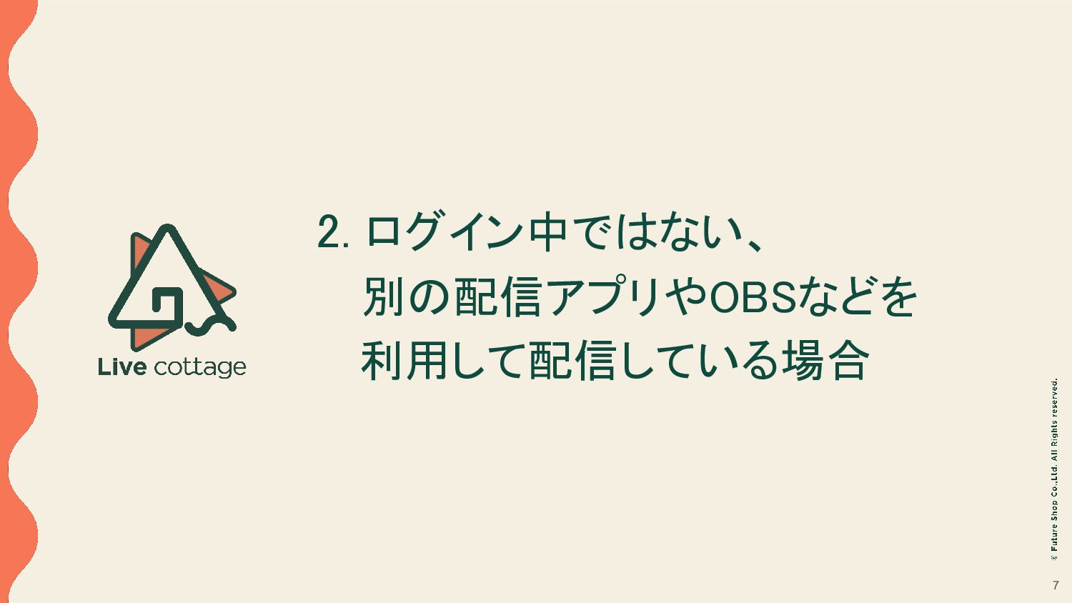 7 2. ログイン中ではない、 別の配信アプリやOBSなどを 利用して配信している場合