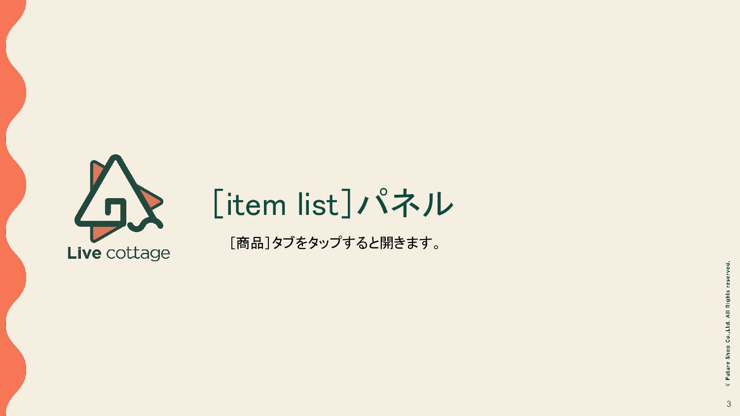 3 [item list]パネル [商品]タブをタップすると開きます。