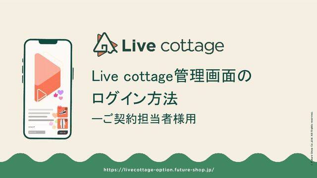 7 ログインパスワードを設定する Live cottage管理画面にアクセスします。 ログインURLは、スライド下をご確認ください。 この時点では