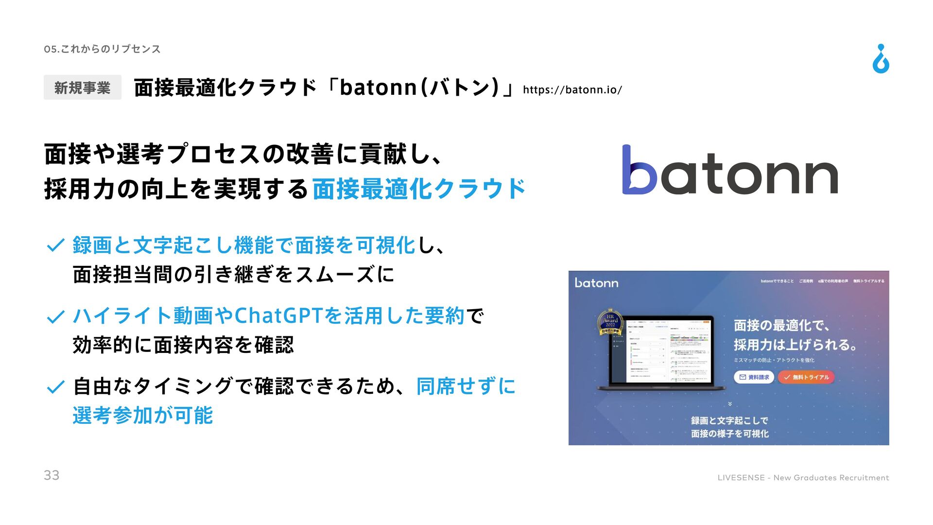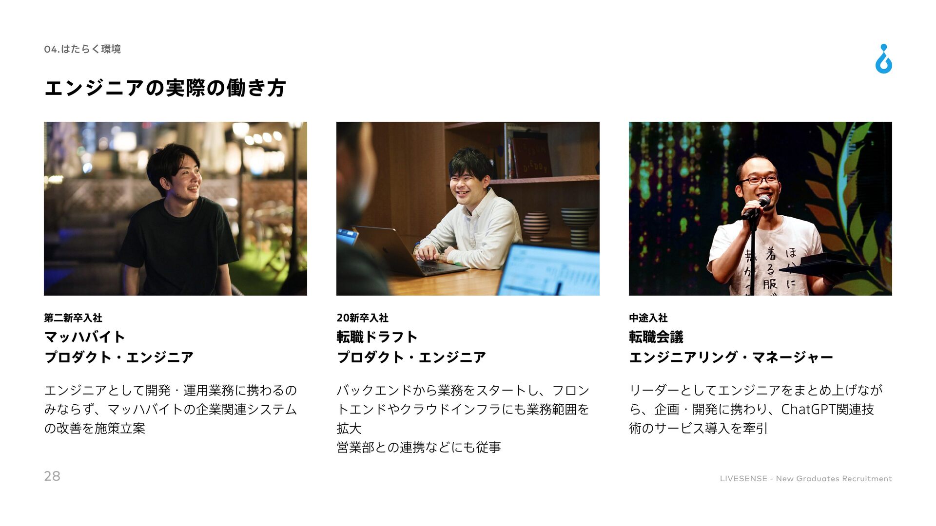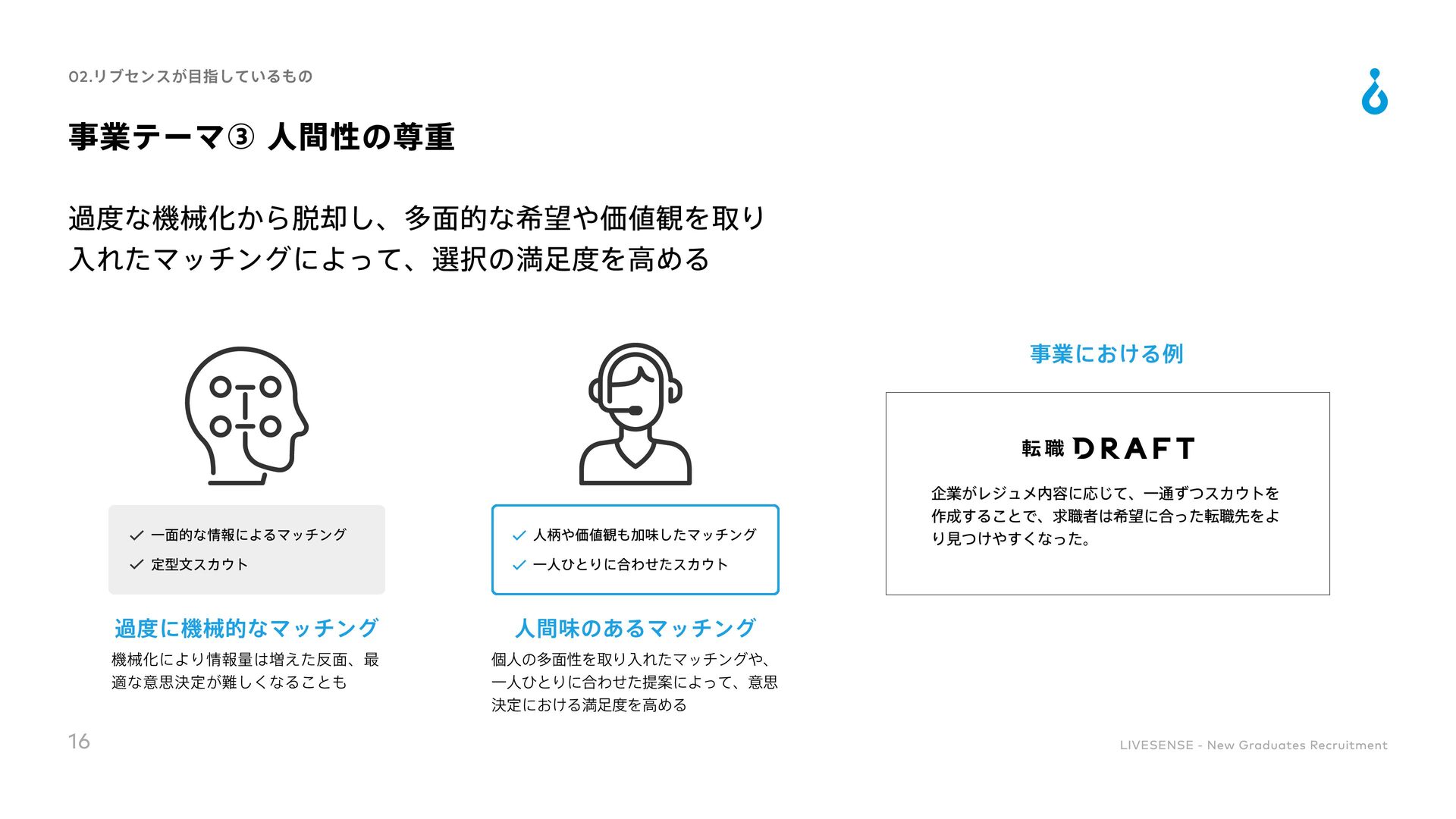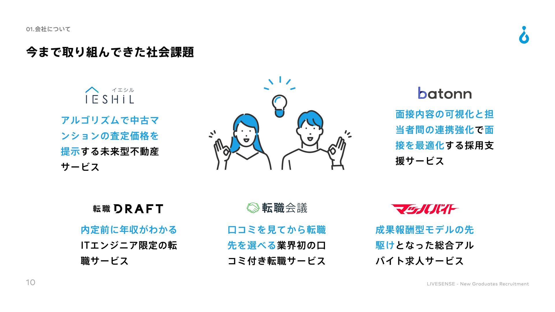Culture Change 対処すべき課題の本質を的確に捉えることができる 既存の方法にとらわれずに、あらゆる可能性を検討して最適な手段を導くことができる 実現可能な計画に落とし込み、様々な状況でも対応できるよう、再現性高い要素に分解できる 高い目標を掲げ、最後まで諦めずにやりきることができる 困難な状況でも他責にせず、主体的に取り組める 自身と周囲の成果の最大化に向け、周囲を巻き込むコミュニケーションが取れる 「社会課題を仕組みで解決する」という志向を持ち合わせている 目標設定や目標達成までのアクションを自ら考えることができる 常に自身を高めるために取り組みをしたりそれができる環境に身を置いたりできる ノウハウの共有や仕組み化によってチーム成果を高めることができる 変化に柔軟に対応しながら、自身で推進していくベンチャーマインドを持ち合わせている 自身の行動を省みた上で改善のアクションが取れ、実際に改善や成果創出に繋げられる 自身を高めるための学習や挑戦をし、継続的に成長していく為の行動を起こせる 36