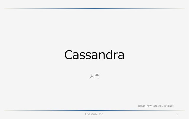 with column_type = 'Super‘ and comparator = 'AsciiType‘ and rows_cached = 10000; b8f617d0-7263-11e1-0000-242d50cf1fff Waiting for schema agreement... ... schemas agree across the cluster カラムファミリーを作成。