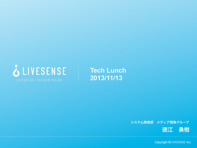 γεςϜ։ൃ෦ɹϝσΟΞ։ൃάϧʔϓ Copyright © LIVESENSE Inc. ಙߐɹ༐थ Tech Lunch 2013/11/13