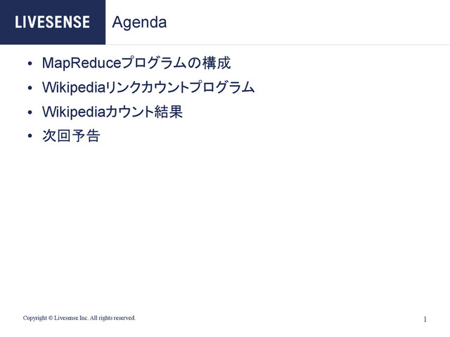 単純なWordCountのソース(Mapper) public static class TokenizerMapper extends Mapper<Object, Text, Text, IntWritable>{ private final static IntWritable one = new IntWritable(1); private Text word = new Text(); public void map(Object key, Text value, Context context ) throws IOException, InterruptedException { StringTokenizer itr = new StringTokenizer(value.toString()); while (itr.hasMoreTokens()) { word.set(itr.nextToken()); context.write(word, one); } }