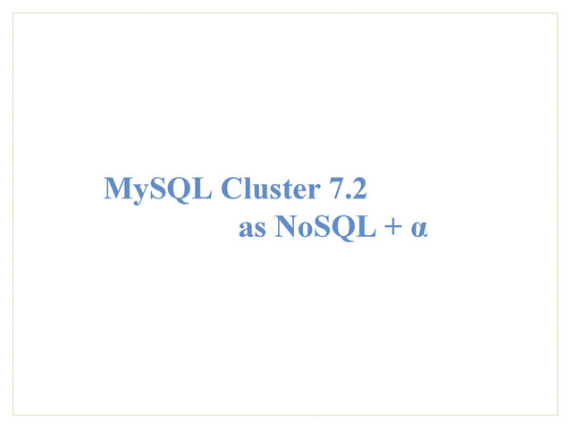 MySQL Cluster 7.2 as NoSQL + α