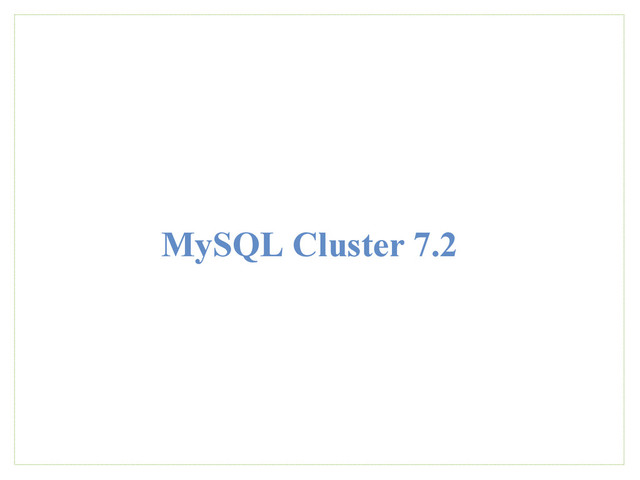 ◦レプリケーション MySQL Cluster-> MySQL Cluster MySQL Cluster-> MySQL ◦バックアップ 常にフルバックアップ