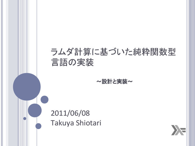 ラムダ計算に基づいた純粋関数型 言語の実装 2011/06/08 Takuya Shiotari ~設計と実装~
