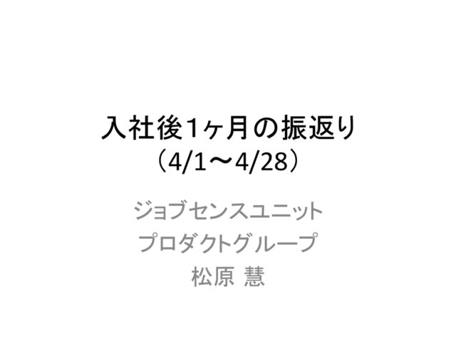 入社後1ヶ月の振返り (4/1〜4/28) ジョブセンスユニット プロダクトグループ 松原 慧