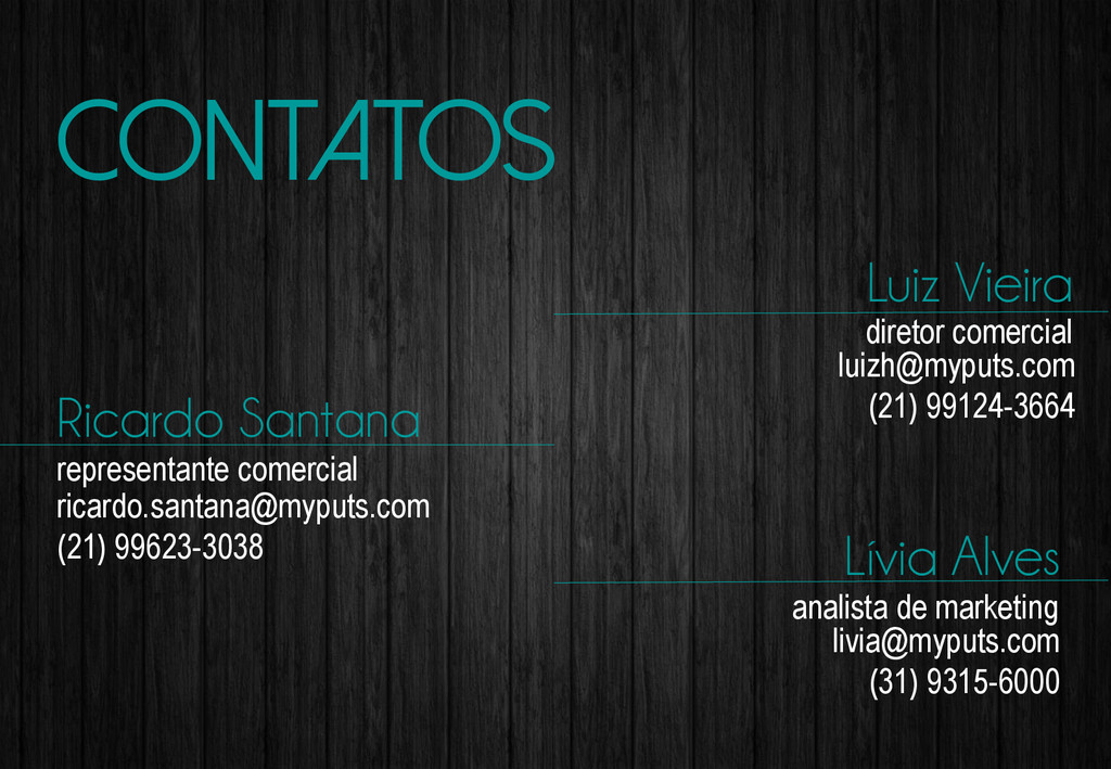 contatos Luiz Vieira diretor comercial Ricardo Santana representante comercial Lívia