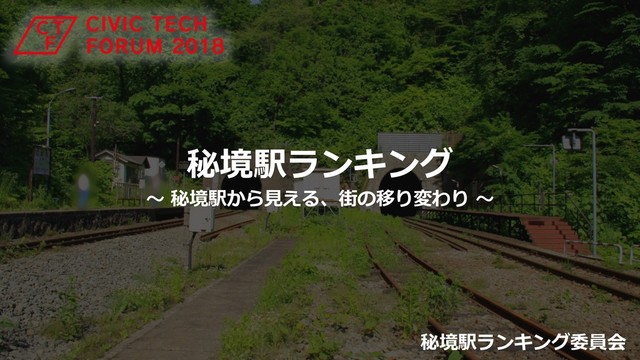 秘境駅とは山奥や原野など、人里から離れた箇所に所在する鉄道駅を指した呼称でありますが、 到達困難な場所であるほど、人はそこに魅力を感じ、到達欲求が駆り立てられたりもします。 秘境駅は、日常的な利用者がほとんどおらず、駅やその路線が廃止されることが多いため、減少傾向にあったりもします。 そこで、オープンデータを活用し、全国の駅を対象に秘境駅ランキングを作ることで、 新たなる価値の発見に繋がるのではないのかと考えました。