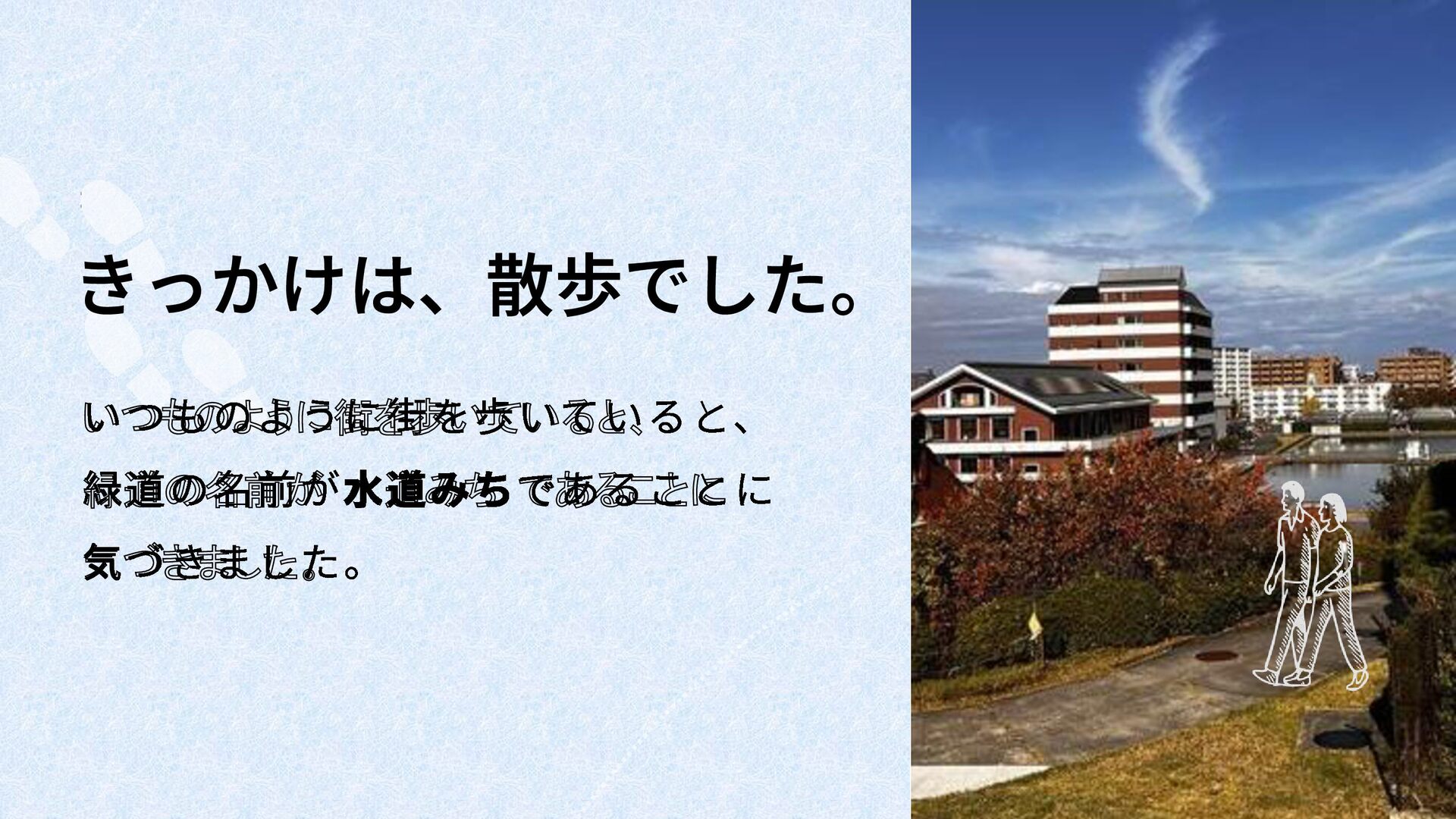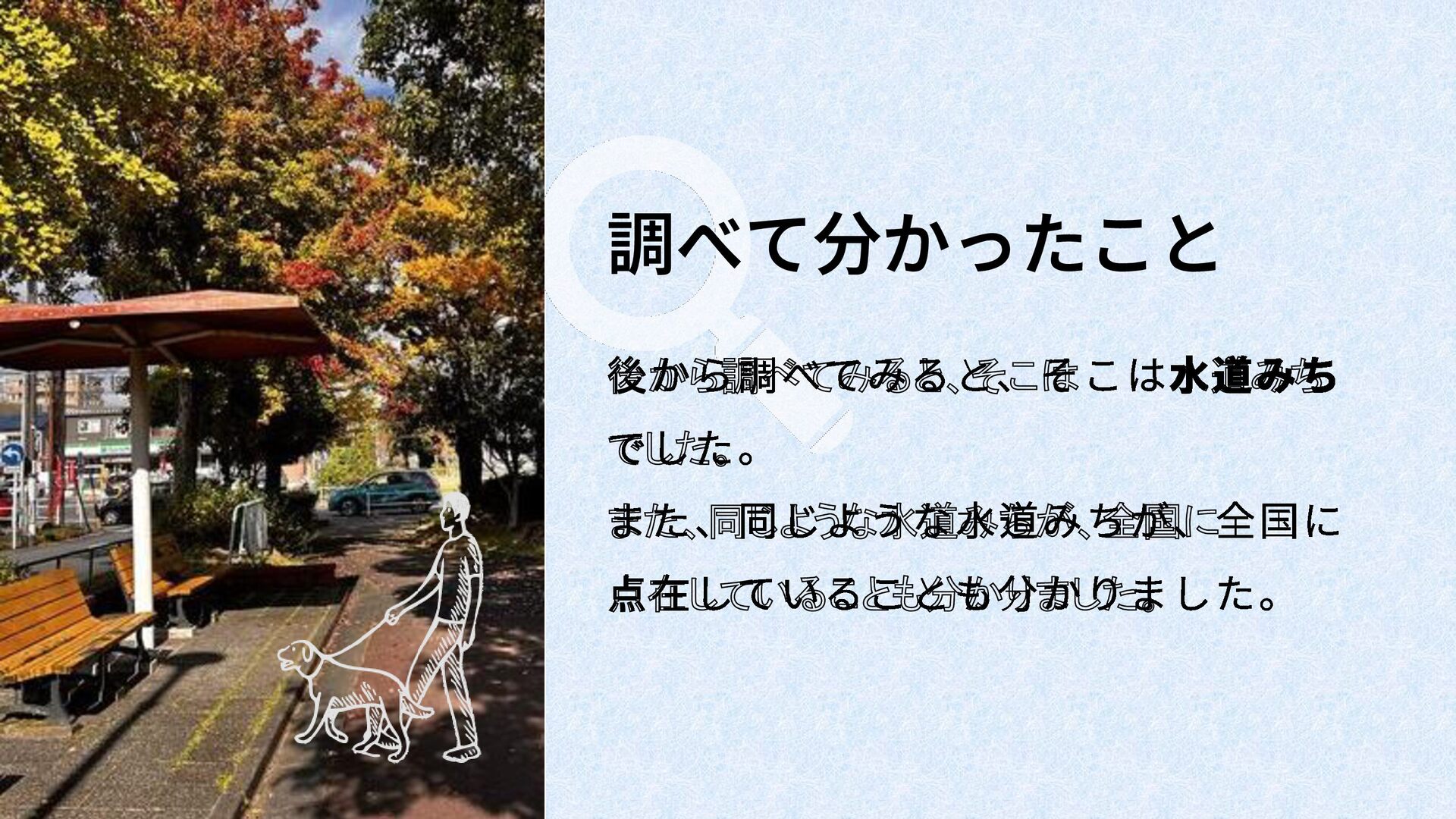 ・散歩中に水道みちに気づき、全国の水道みちを地図にまとめたいと思いついた。