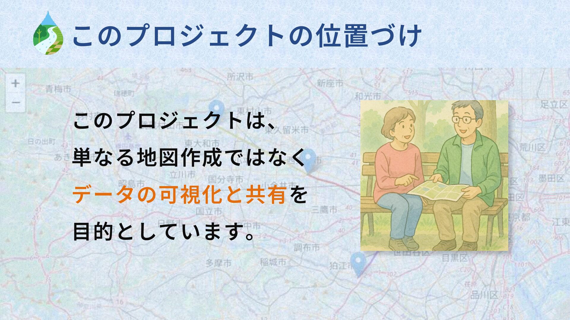 ・地図作成だけでなく、データの可視化と共有を目的とする。