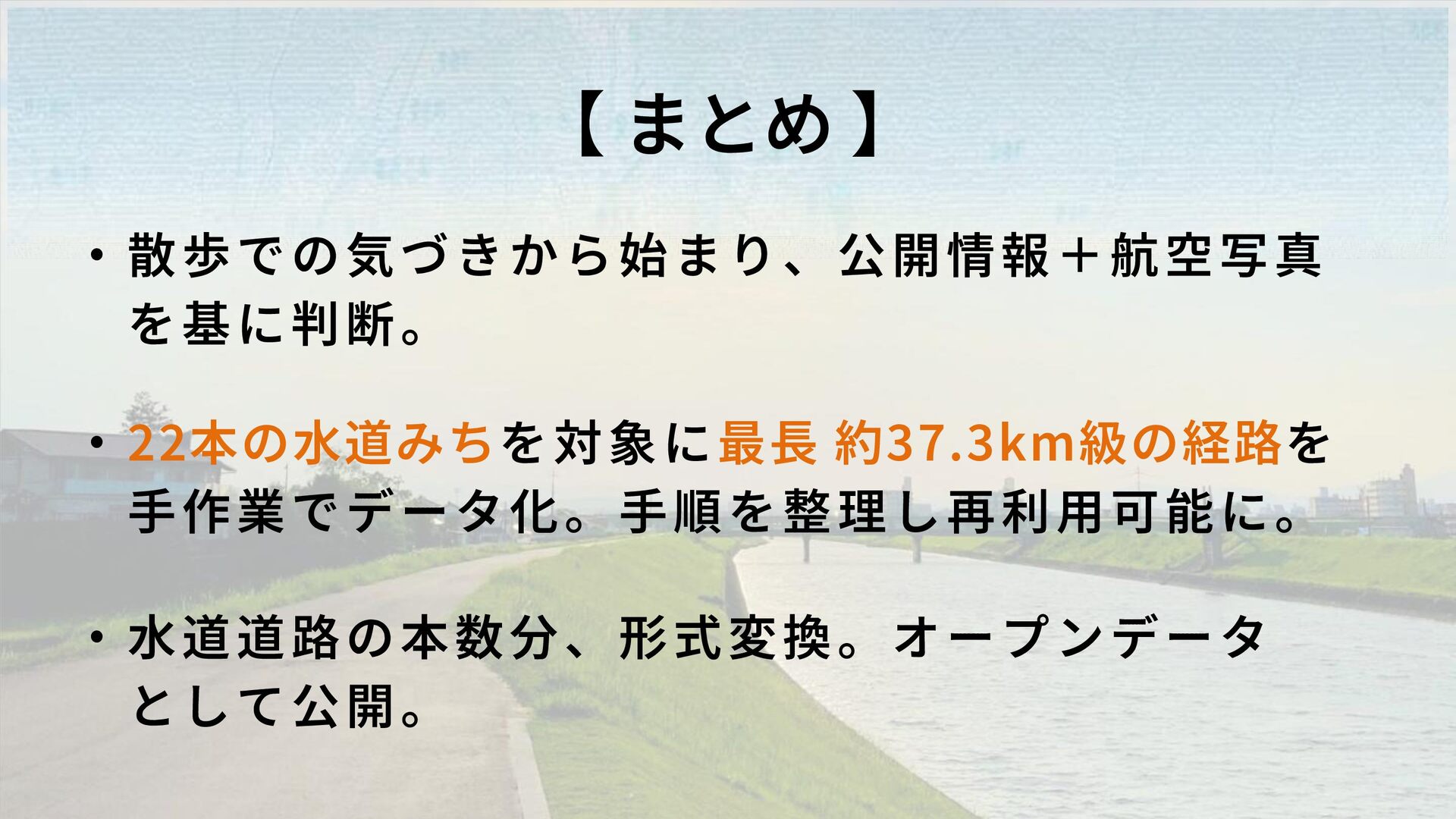 ・対象は22本、最長約37.3kmの水道みちをデータ化。