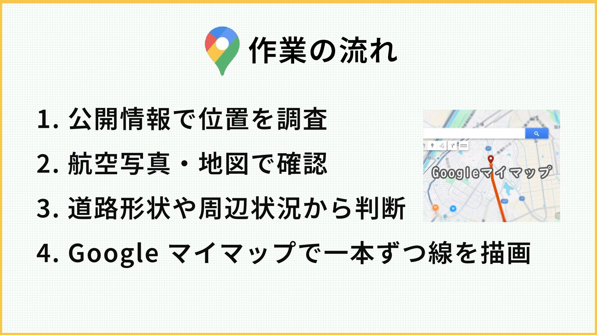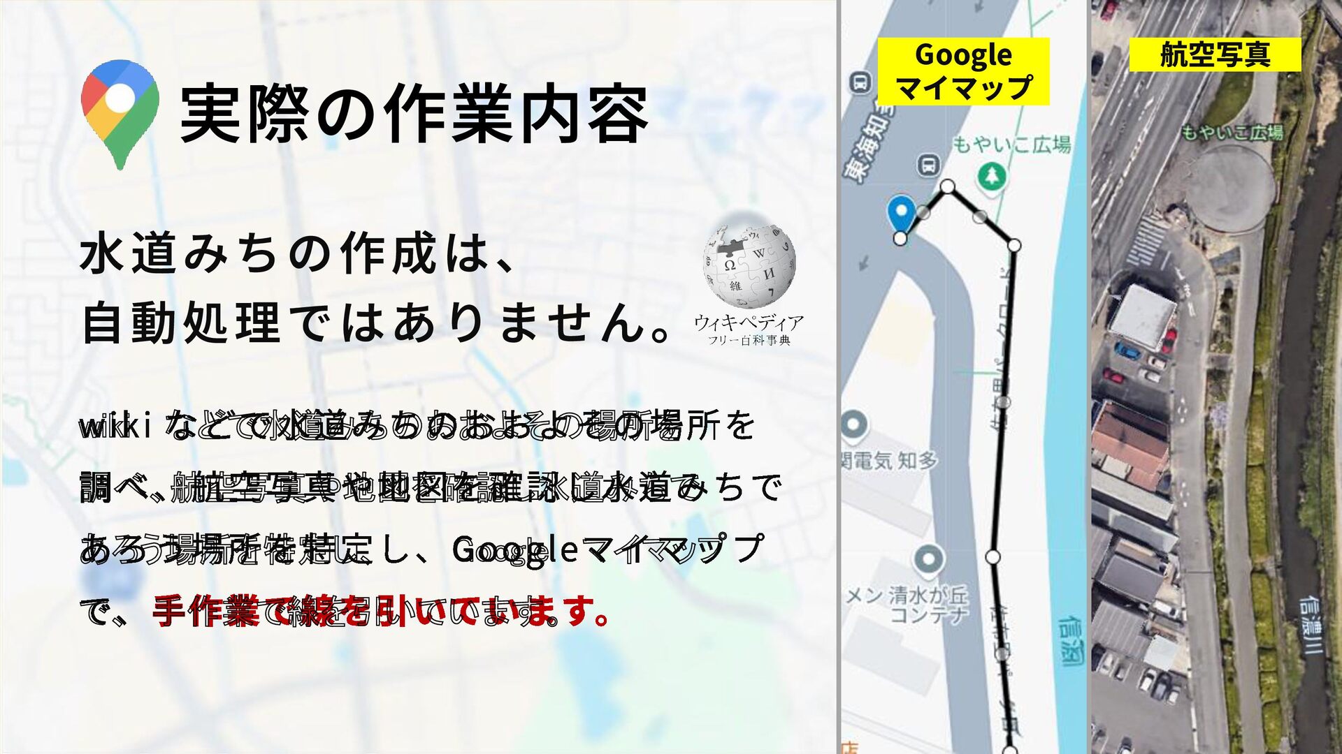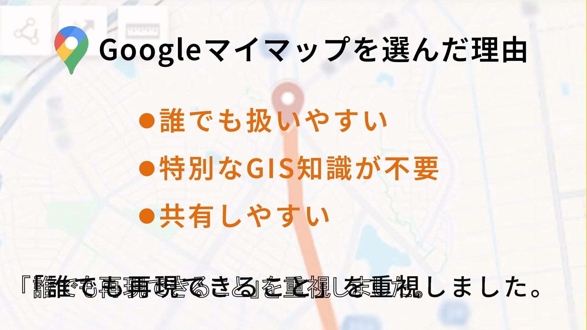 ・Googleマイマップを使い、誰でも扱いやすく再現性を重視した。