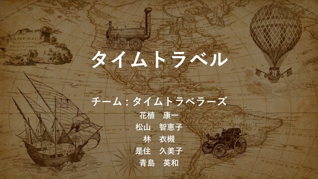 タイムトラベル チーム : タイムトラベラーズ 花植 康一 松山 智恵子 林 衣槻