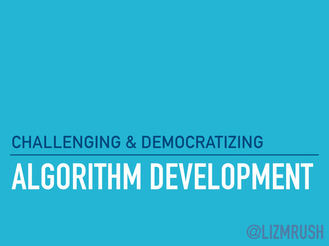 sell, and rent algorithms now ▸ Allows non-algorithm developers to make business choices about which algorithms to use ▸ Follows “free market” principles: ▸ The best algorithms will become the most popular ▸ People will seek out algorithms specific for their needs ▸ Creates space for two-way communication between creators and users