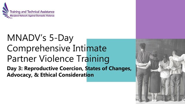 1. MNADV’s 5-Day Comprehensive Intimate Partner Violence Training Day 3: Reproductive