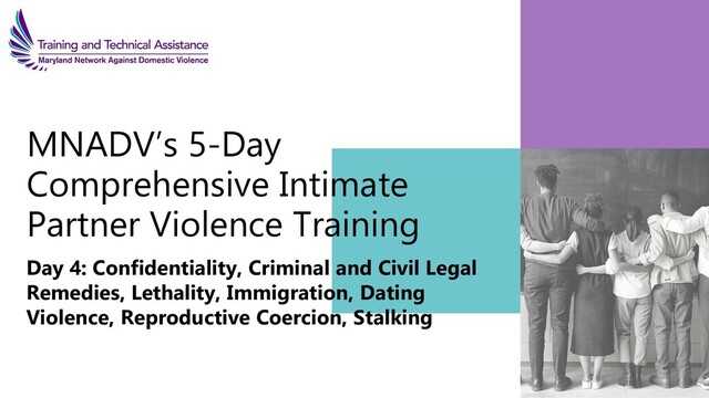 1. MNADV’s 5-Day Comprehensive Intimate Partner Violence Training Day 4: Confidentiality,