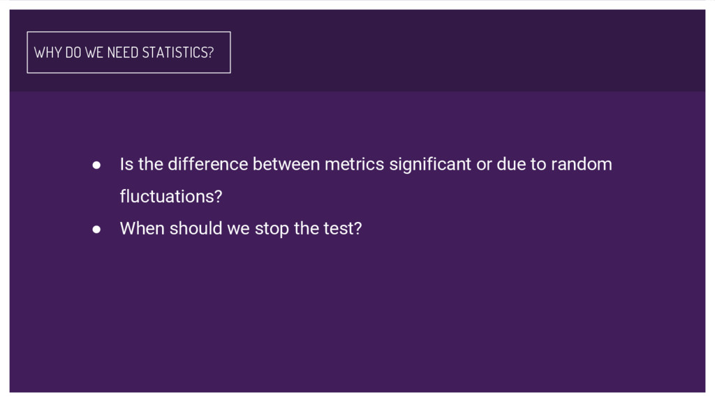 metrics significant or due to random fluctuations? • When should we stop the test?