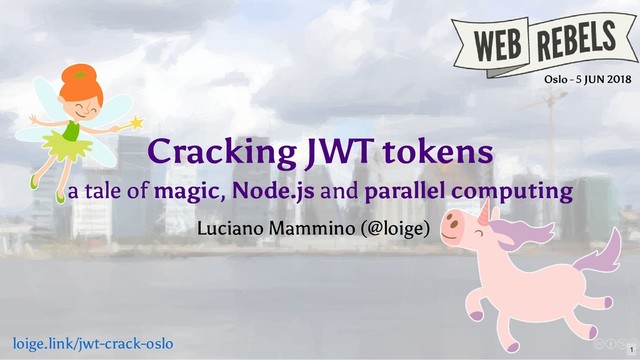 Learn how you can use some JavaScript/Node.js black magic to crack JWT tokens and impersonate other users or escalate privileges. Just add a pinch of ZeroMQ, a dose of parallel computing, a 4 leaf clover, mix everything applying some brute force and you'll get a powerful JWT cracking potion!