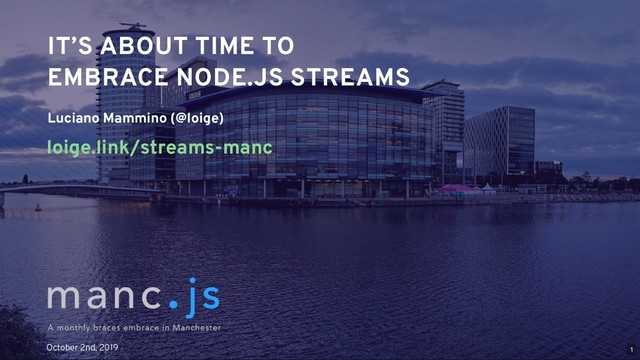 TO EMBRACE NODE.JS STREAMS EMBRACE NODE.JS STREAMS loige.link/streams-manc October 2nd, 2019 1