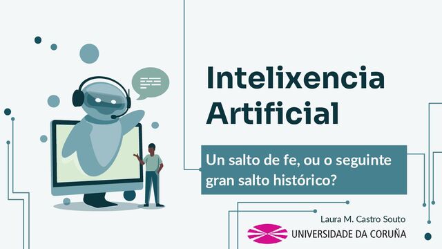 Ao longo da historia, descubrimentos como o dominio dos metais ou a imprenta mudaron para sempre as formas de vida da humanidade. Hoxe, preséntasenos a Intelixencia Artificial como unha tecnoloxía coa capacidade de dar un novo xiro á nosa historia, transformando a nosa vida cotiá, a nosa economía, e até a natureza da creatividade humana. Nesta palestra explicaremos de xeito sinxelo que é a Intelixencia Artificial e que papel está a xogar xa nas nosas vidas, así como de que xeitos podería modelar o futuro da nosa sociedade. Estaremos ante o próximo gran salto histórico en Occidente?
