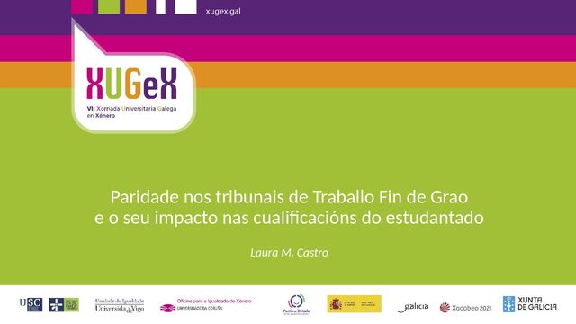Neste traballo presentamos os datos recadados desde a Coordinación do Grao en Enxeñaría Informática da Universidade da Coruña en relación á paridade dos tribunais de TFG e as cualificacións obtidas polo estudantado, antes e despois da implantación deste criterio en setembro de 2017.