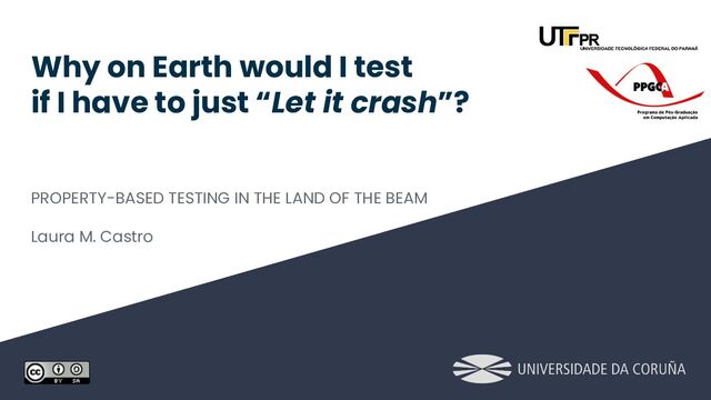 This lecture discusses the 'let it crash' the philosophy, the famous moto of the BEAM ecosystem, in the context of software testing. An introduction and hands-on demo of property-based testing (PBT) is then offered, as a method to automate and improve testing processes, contrasting it with traditional example-based testing. While PBT does not replace unit tests and requires a solid understanding of business logic and programming skills, it constitutes a very powerful tool that can improve confidence in the behavior of the SUT to unprecedented levels.