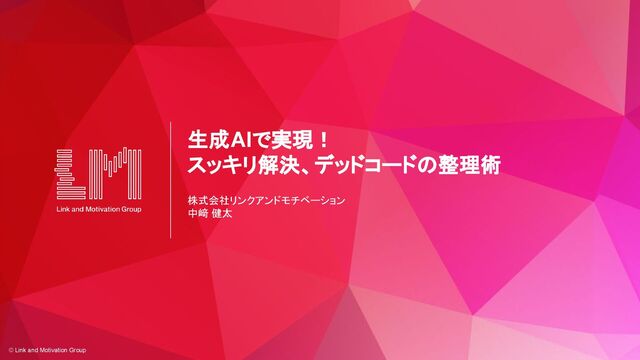 © Link and Motivation Group 生成AIで実現! スッキリ解決、デッドコードの整理術 株式会社リンクアンドモチベーション 中﨑 健太