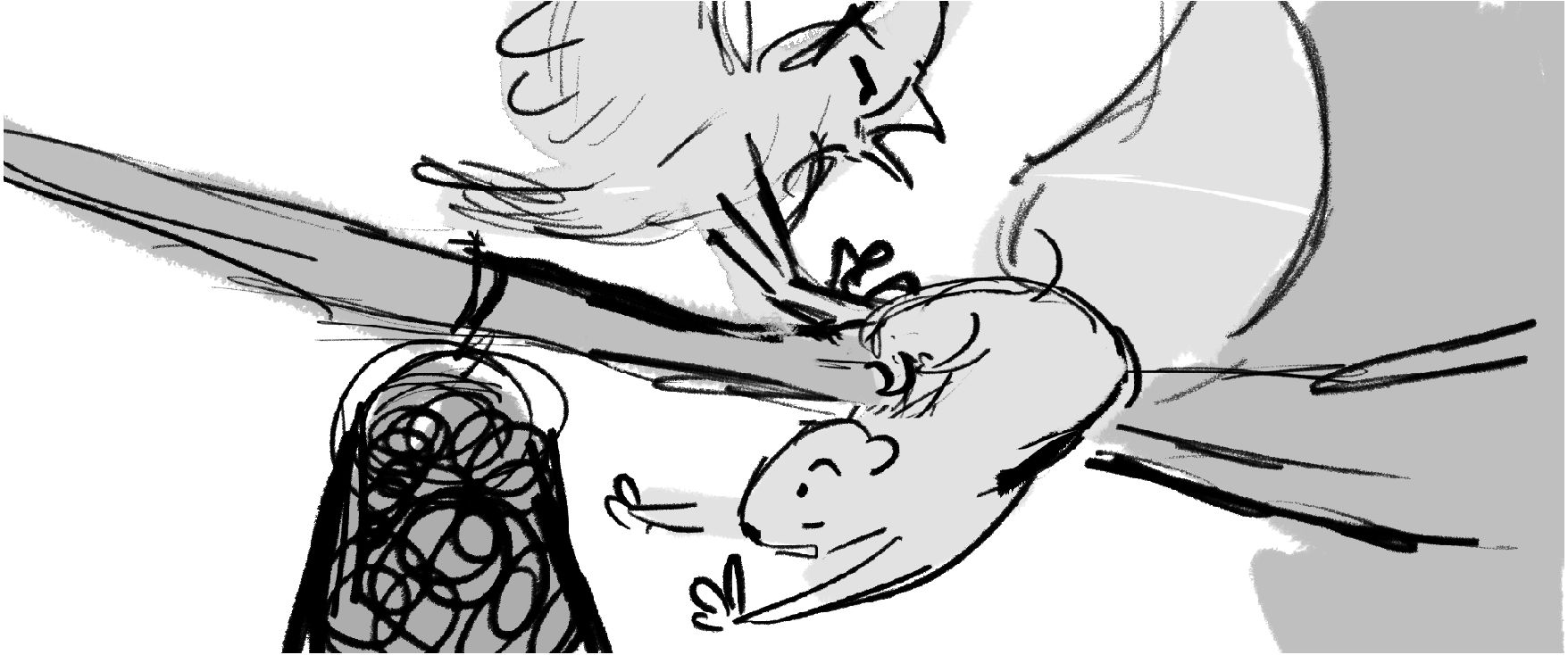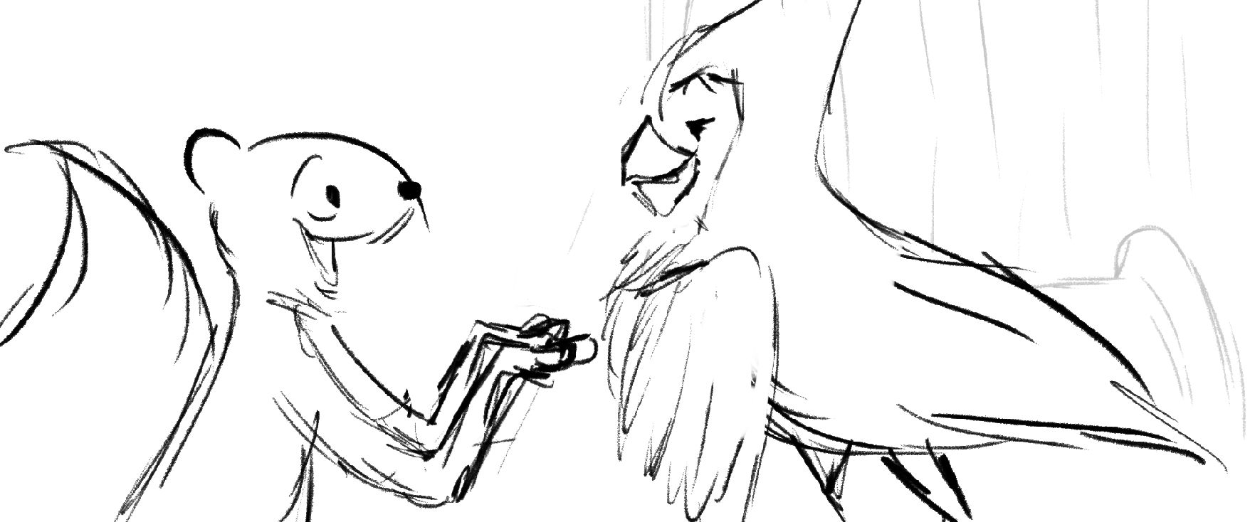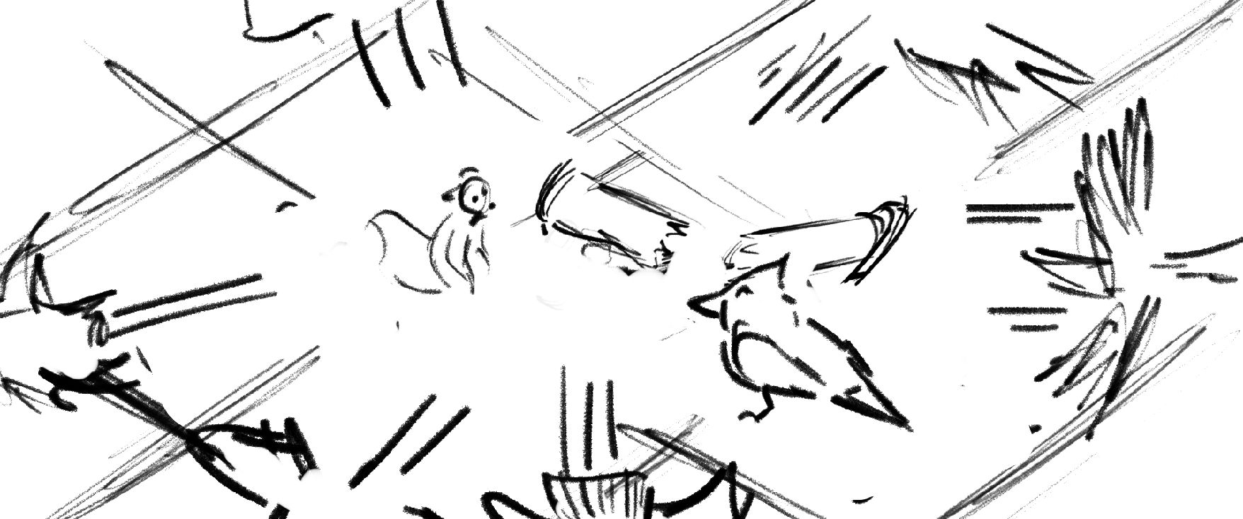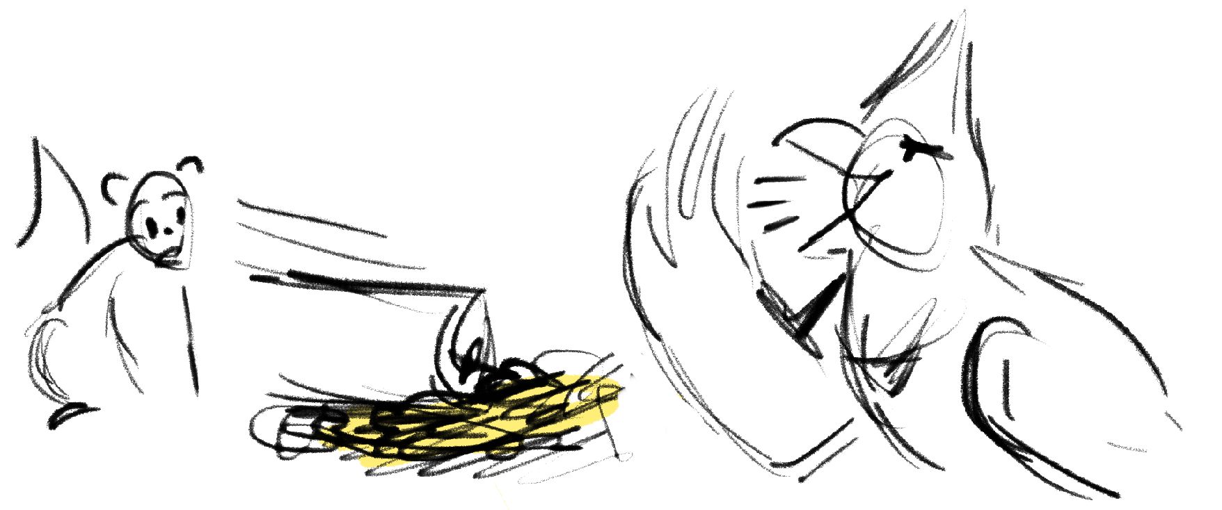 A squirrel has a showdown against a Cardinal to see who will claim the birdfeeder as their own.