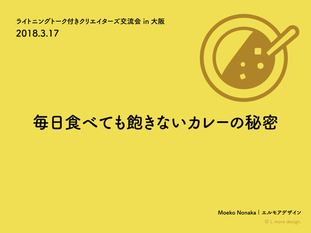 ライトニングトーク付きクリエイターズ交流会in大阪 UIデザインは難しくない。 簡単に置き換えると「毎日食べても飽きないカレー」。 そんな毎日食べても飽きないカレーを作る為に大切にしていることをお話しました。