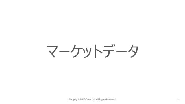 40% 45% 0 20,000 40,000 60,000 80,000 100,000 120,000 140,000 高 齢 化 率 日 本 の 人 口 ( 千 人 ) 0~14歳(千人) 15~64歳(千人) 65歳以上(千人) 人口減少・高齢化 【出典】2010年までの値は総務省「国勢調査」「人口推計」、2015年は総務省「人口推計」(2015年10月1日現在)、推計値は国立社会保障・人口問題研究所「日本の将来推計人口 (2012年1月推計)」の中位推計より国土交通省作成資料(https://www.mlit.go.jp/hakusyo/mlit/h27/hakusho/h28/html/n1111000.html)をもとに当社が独自に作成 ✓人口の減少に伴い高齢化率が上昇傾向 Copyright © LifeOnes Ltd. All Rights Reserved.