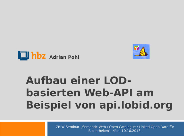 Vortrag gehalten von Adrian Pohl (hbz) am 10.10.2013 beim ZBIW-Seminar "Semantic Web / Open Catalogue / Linked Open Data für Bibliotheken" in Köln.