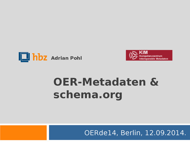 Richard Wallis, dessen schema.org- Kurzpräsentationen für diese Folien als Strukturvorlage gedient haben, siehe etwa http://de.slideshare.net/rjw/why-schemaorg-for-libraries (publiziert unter einer CC-BY-Lizenz). Diese Folien stehen – soweit nicht anders angegeben – unter der Creative Commons Public Domain Dedication (CC0): http://creativecommons.org/publicdomain/zero/1.0/.