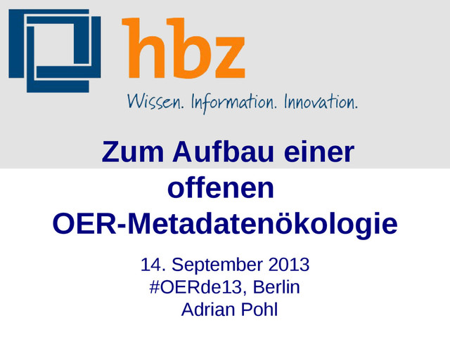 Input-Folien zur BarCamp-Session "Aufbau einer offene OER-Metadatenökologie" bei der OER Konferenz 2013 in Berlin. Präsentiert von Adrian Pohl.