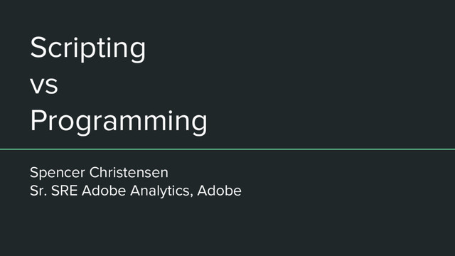 Presentation given at OpenWest 2017 conference, entitled Scripting vs Programming. Discusses the terms and biases we have when thinking about scripting versus programming.