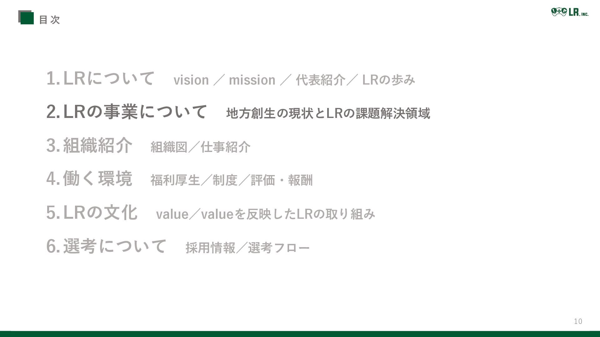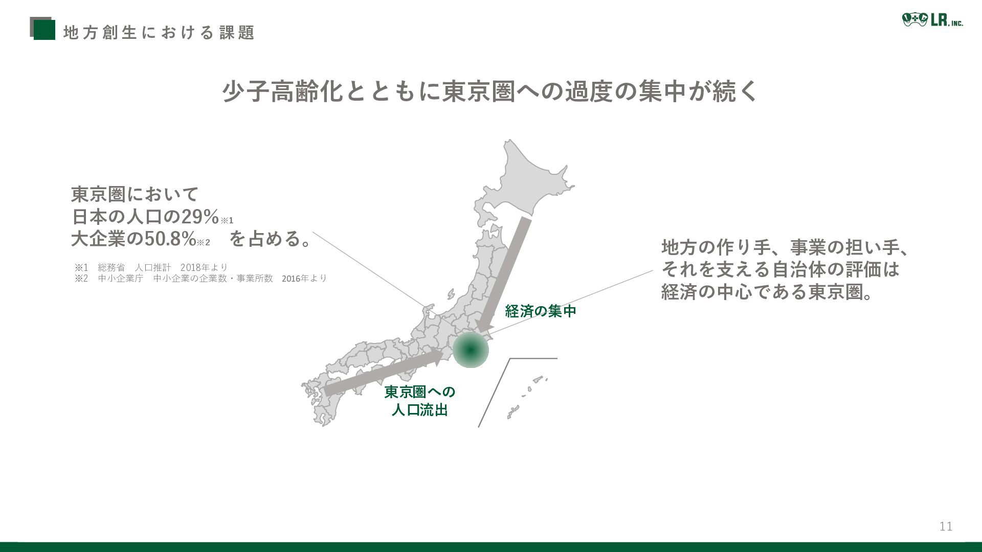 10 1.LRについて vision / mission / 代表紹介/ LRの歩み 2.LRの事業について 地方創生の現状とLRの課題解決領域