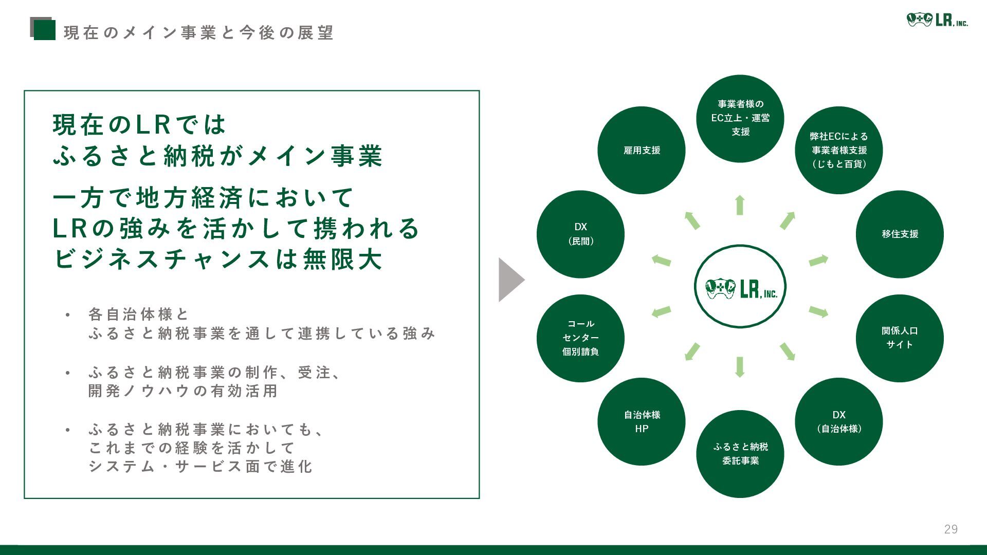 29 現在のLRでは ふるさと納税がメイン事業 一方で地方経済において LRの強みを活かして携われる ビジネスチャンスは無限大 現 在 の メ