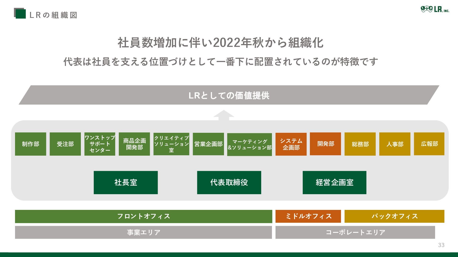 33 L R の 組 織 図 フロントオフィス コーポレートエリア ミドルオフィス