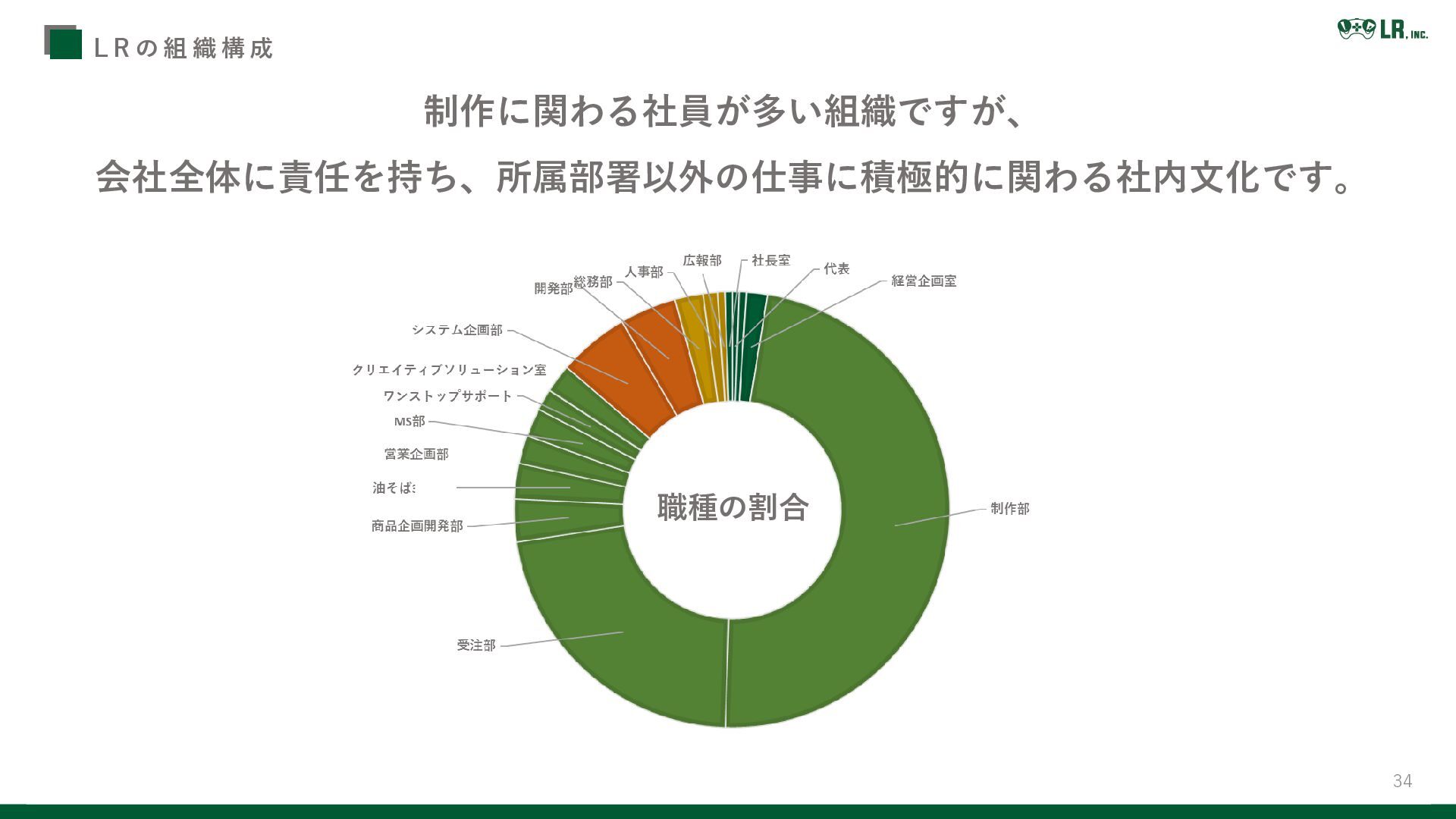 34 L R の 組 織 構 成 職種の割合 制作に関わる社員が多い組織ですが、