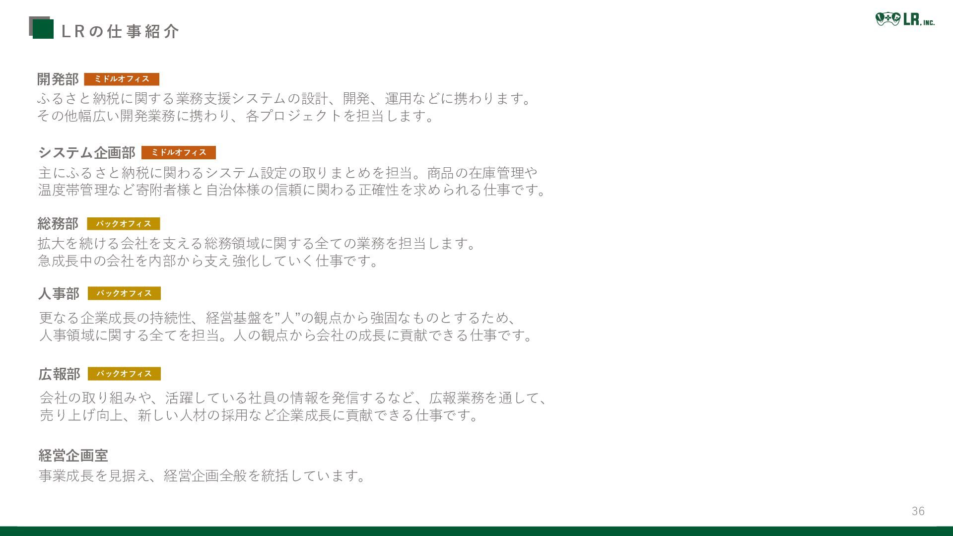 36 L R の 仕 事 紹 介 総務部 人事部