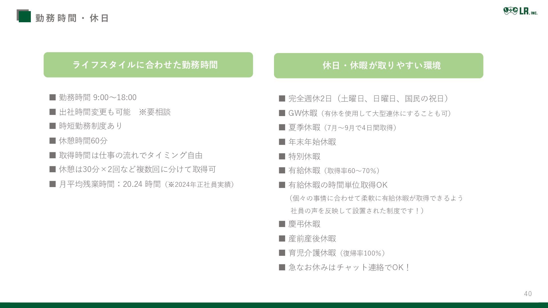 40 勤 務 時 間 ・ 休 日 ▪ 勤務時間