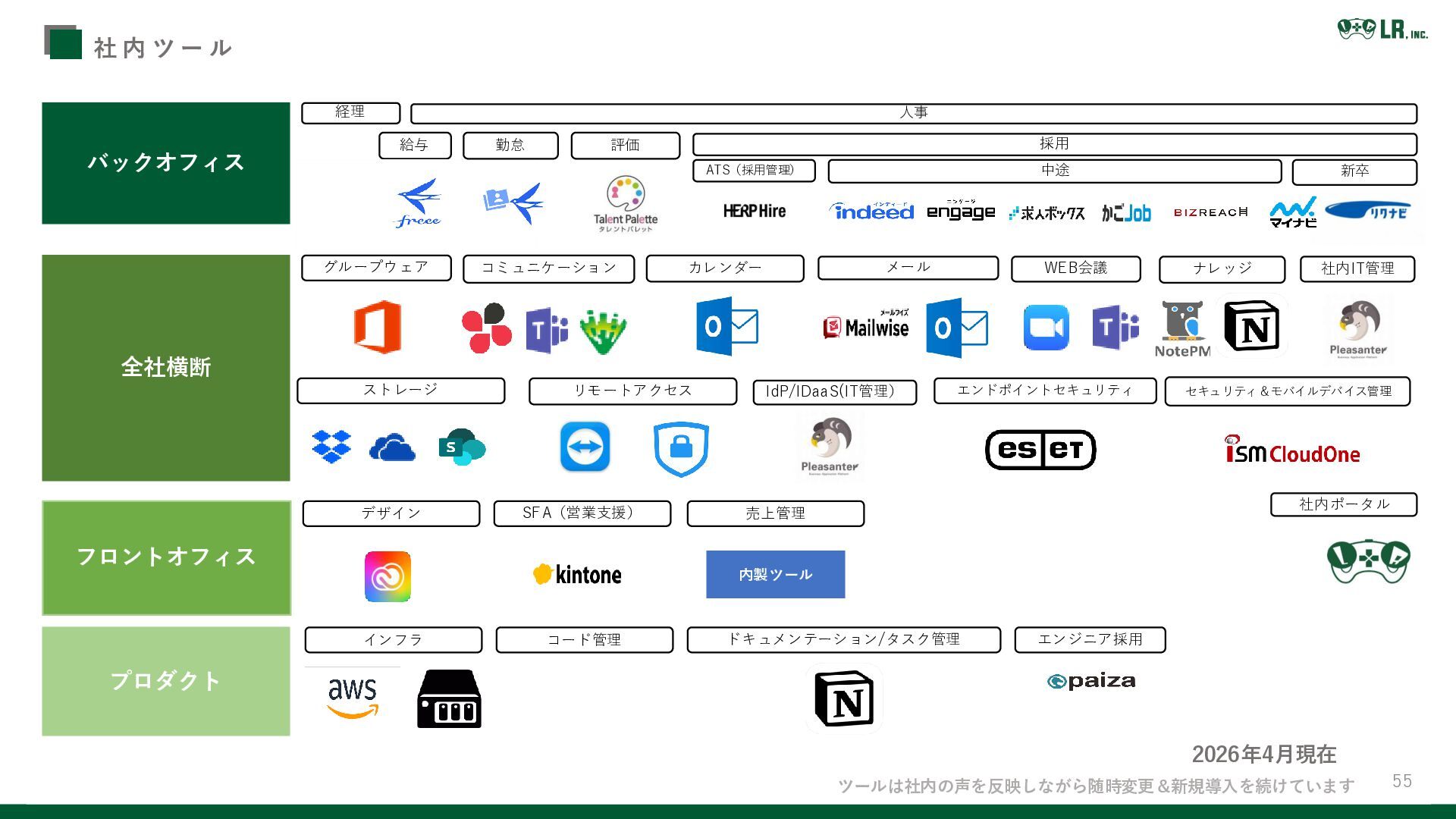 55 社 内 ツ ー ル バックオフィス 全社横断 フロントオフィス プロダクト